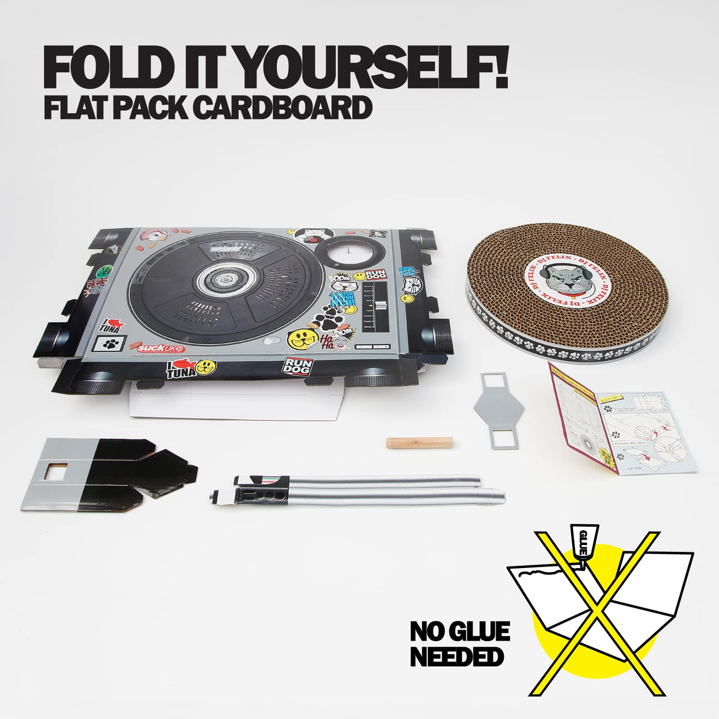 Introducing the Suck UK Cat DJ Decks ? the ultimate cat scratch house that combines fun, creativity, and practicality. Designed to unleash your cat's inner DJ, this innovative scratching pad provides an engaging and interactive experience for cats of all ages. Unlike traditional cat scratching posts that can clutter your living space, the Cat DJ Decks is a stylish, flat-packed cardboard set that easily transforms into a DJ booth for your feline friend.