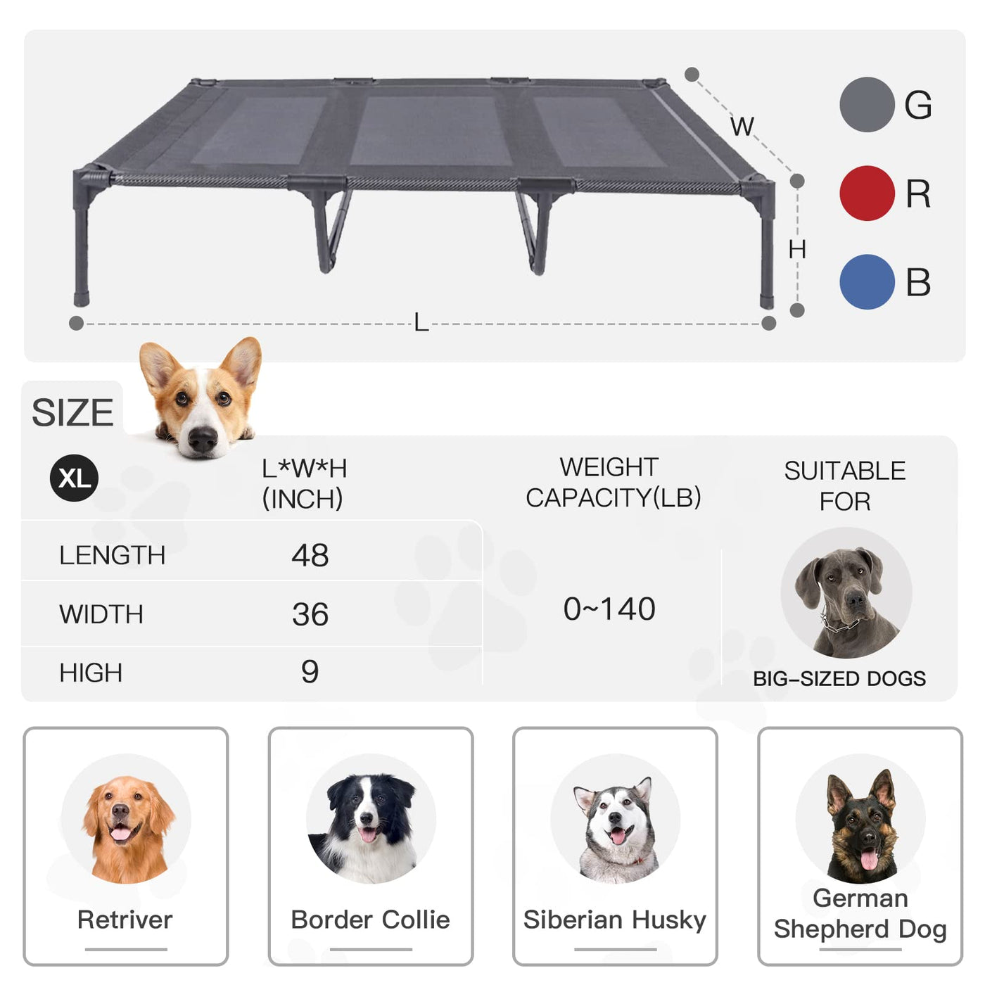 Suddus Elevated Dog Bed Waterproof Outdoor, Portable Raised Dog Bed, Dog Bed Off The Floor, Dog Bed Easy Clean Indoor Or Outdoor Use, X-Large, Grey