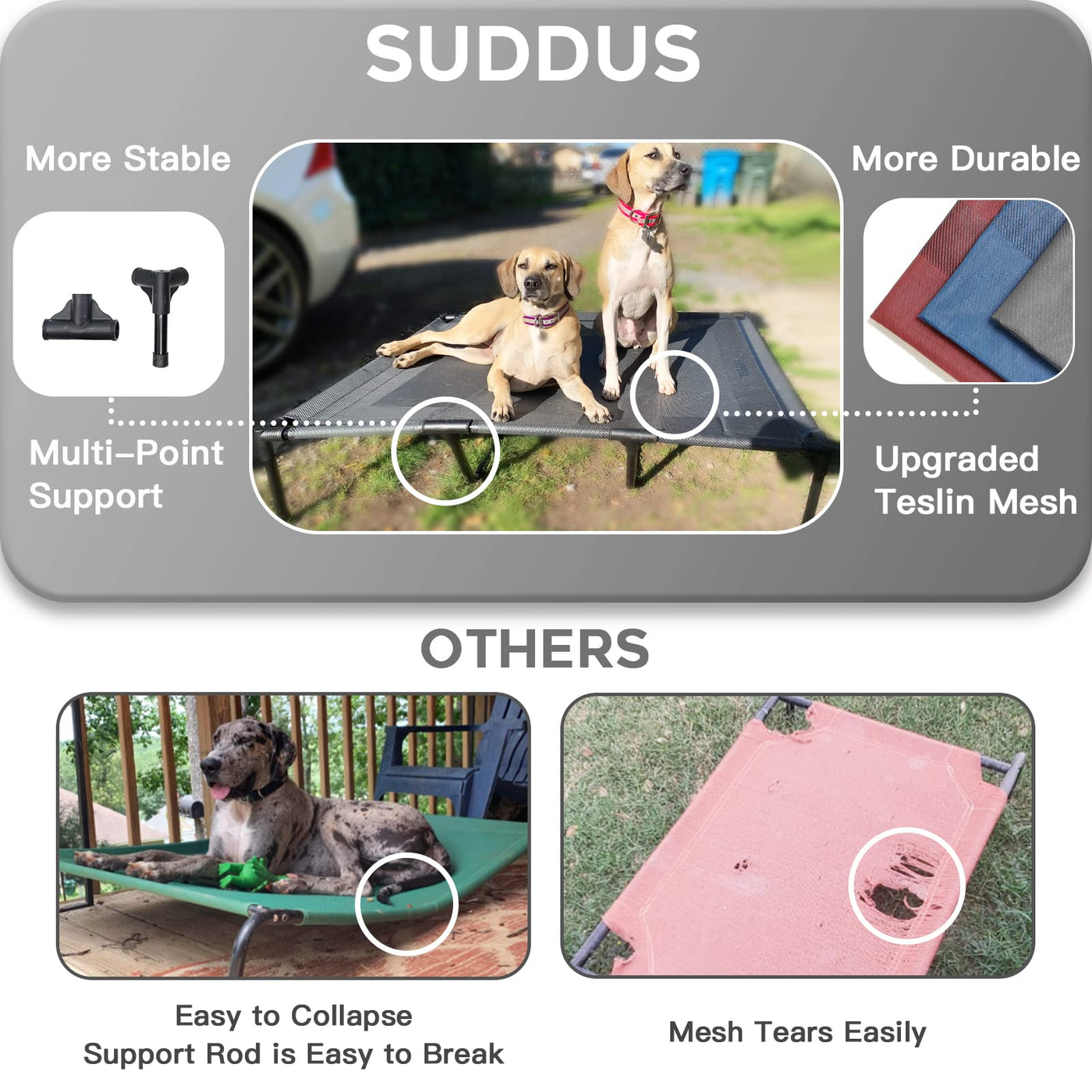 [Detachable and Easy to Clean] The SUDDUS elevated dog bed is versatile and easy to clean. It's like a detachable cot with tutorial videos and instructions making it easy to disassemble and reassemble. Choose the portable dog cot option for on-the-go use.
