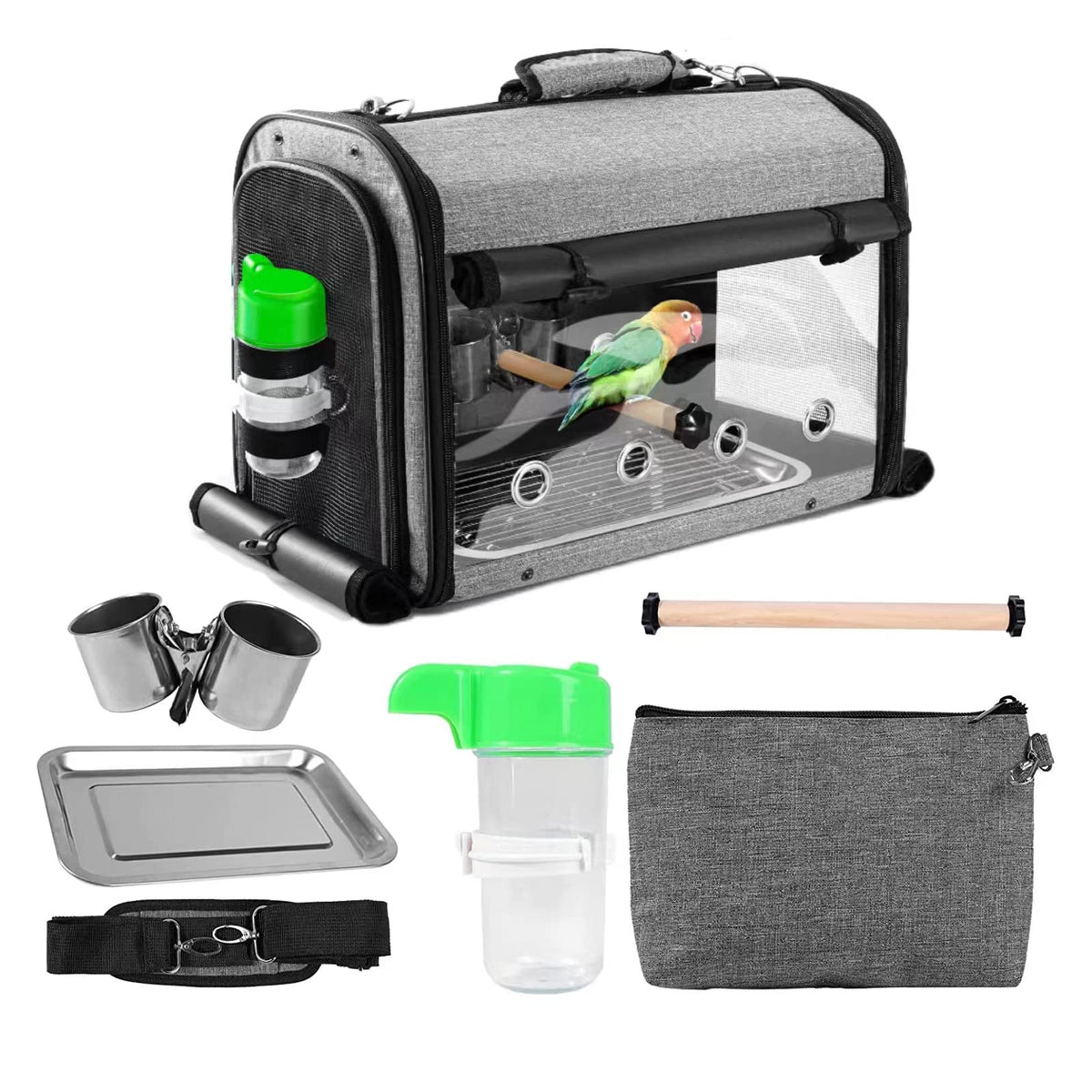 Suertree Bird Carrier Bag Bird Travel Cage With Stand, Lightweight Backpack For Parrot, Portable Bird Travel Bag, Pet Transparent Breathable Travel Cage