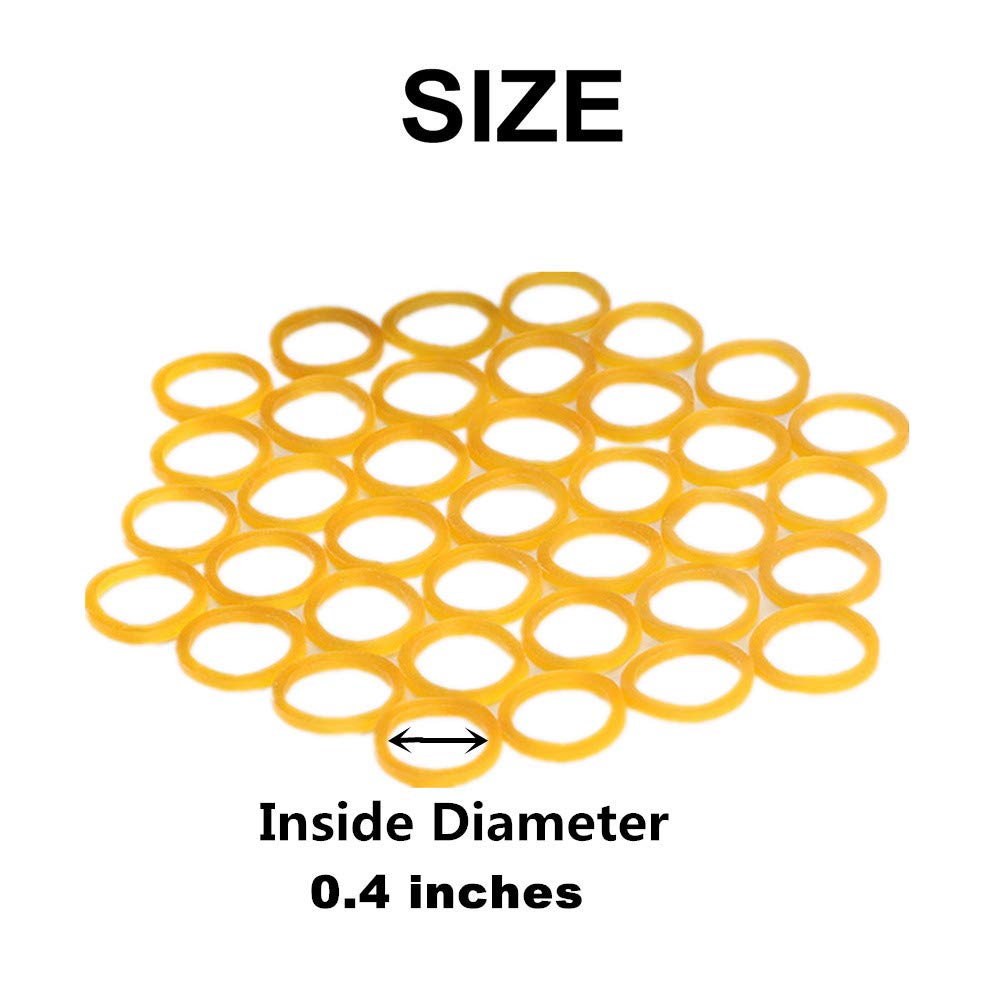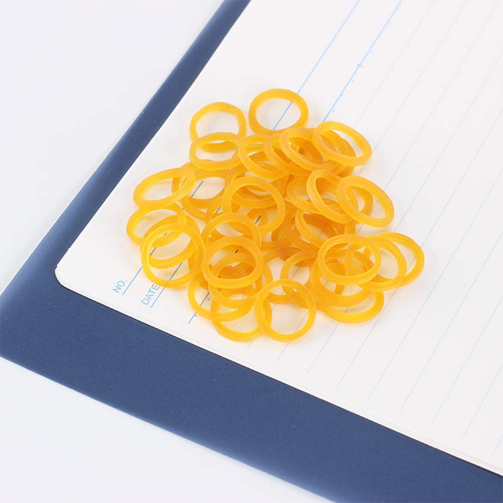 Specifications: Material: made of good quality rubber with good elasticity. Colors: yellow Included as shown in the photo. Size: approx 0.4 inch in inside diameter and 1.4 mm in width. Quantity: 1500 pcs/bag.