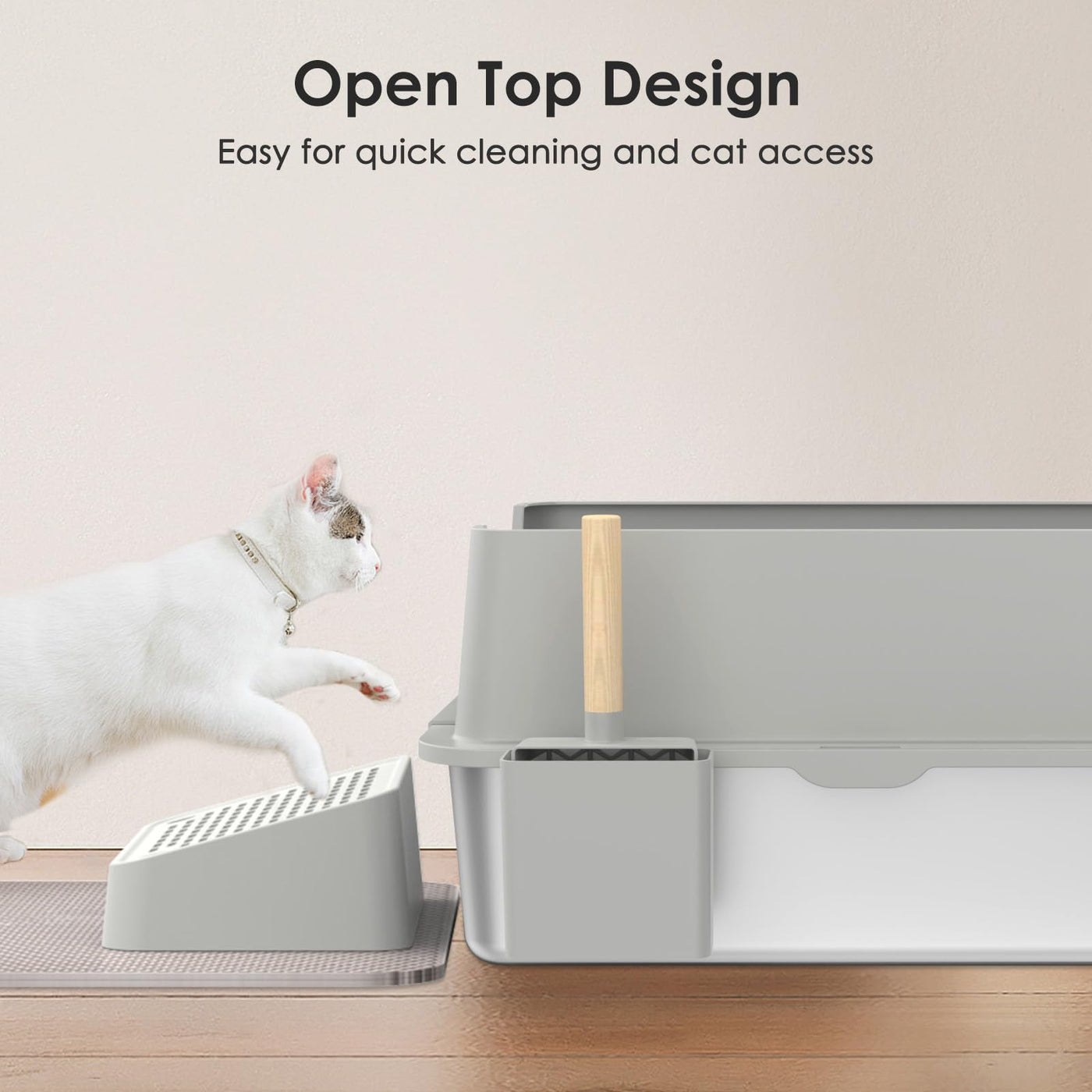 Suitchi Stainless Steel Cat Litter Box,Xl High Sided Cat Litter Box With Poop Scooper/Footboard/Mat (Light Gray)