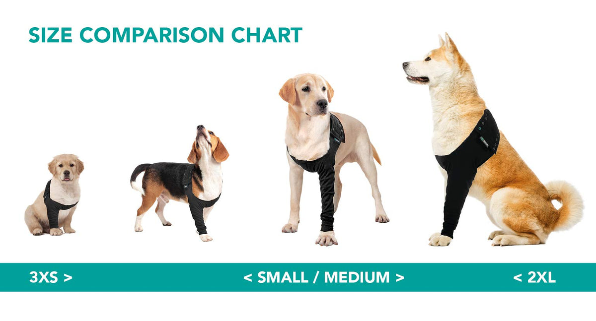 Introducing our original recovery leg sleeve for dogs-the best professional replacement for bandages and dog cones! This adaptable dog surgical long sleeve is made to offer ideal comfort and protection! Our Suitical recovery sleeve will be your devoted friends best friend in many situations including recovery after surgery. Its designed to cover wounds, hot spots, bandages, and skin conditions to provide support during the recovery process. Our recovery long sleeve is interchangeable with your dogs left and right front legs. It also has a double-layered soft fabric around the chest that has a calming effect to help your dog feel less anxious while recovering. The breathable dog recovery sleeve goes all the way down to the paw and provides protection against licking, biting, and scratching to help your dog recover more quickly. Additionally, for better results, the dog elbow sleeve can be worn to cover ointment. With a selection of sizes available, finding the perfect fit for your furry companion is a breeze. Our dog shoulder sleeve is perfect for male dogs and female dogs and is designed to fit dogs of all shapes and sizes, regardless of whether you have a little puppy or a larger breed. With our dog sleeve for after surgery, you can provide your dog with the attention it needs during the recovery process. Embrace the comfort, protection, and convenience it offers, and witness a happier and faster recovery journey for your loyal friend. Sizing Information: To measure your dogs chest circumference, measure directly behind the front legs. To measure the front leg, measure from chest to paw.