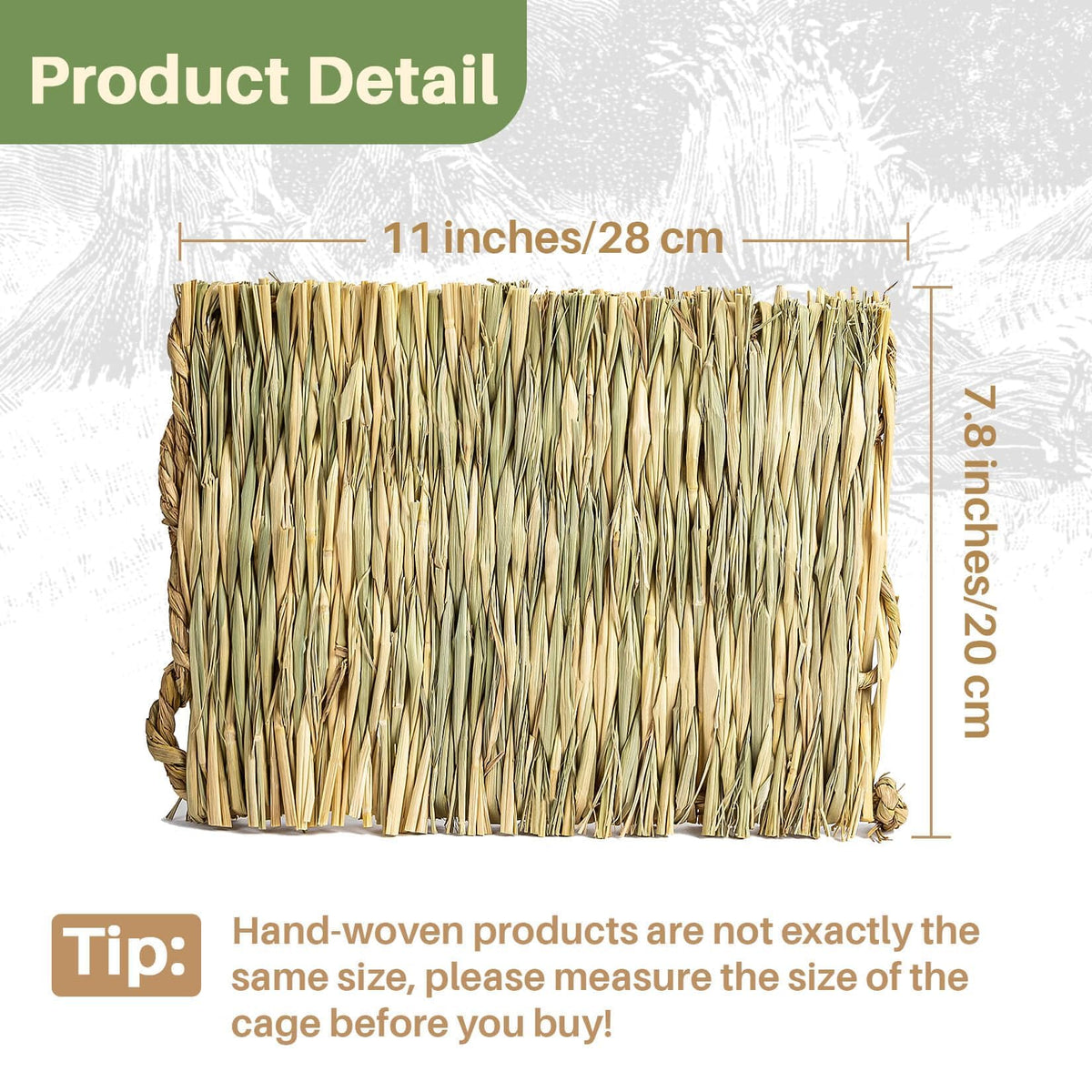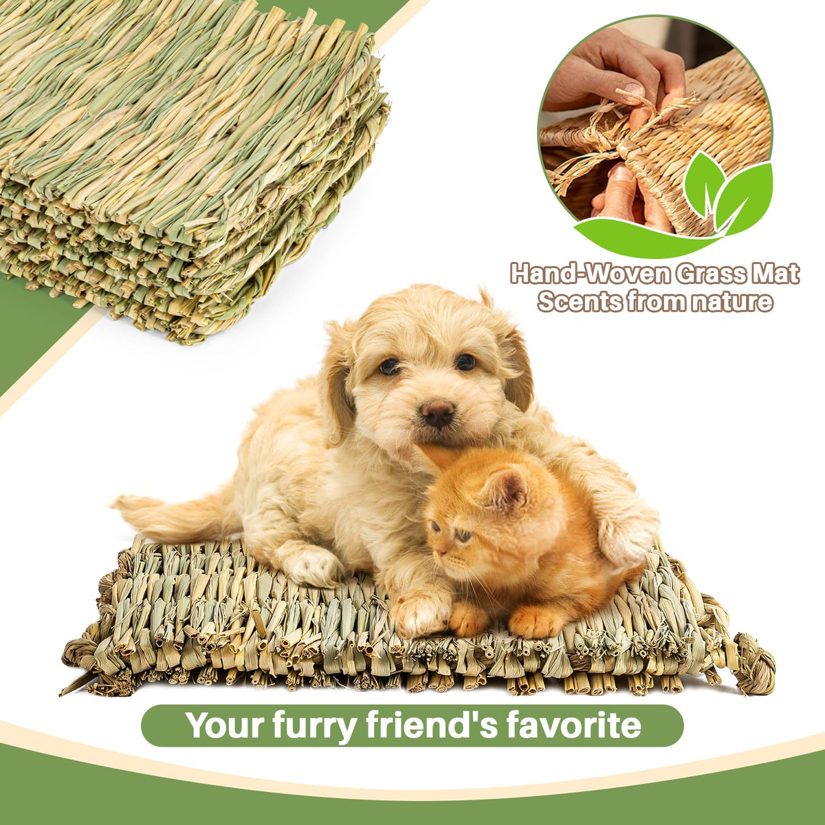 HAND-WOVEN GRASS MAT: All natural hand-woven grass rabbit bed has the scent of the outdoors that your little pet loves. Using it will make your furry friend feel like he is in nature. Please note that because this is a hand-woven product, each pet bedding mat is not exactly the same size.