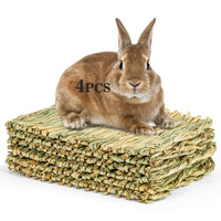 Sukh 4 PCS Rabbit Grass Mats - Natural Hay Woven Bunny Rabbit Bad Cage Mats Pet Bedding Cooling Sleeping Nesting & Toys for Hams