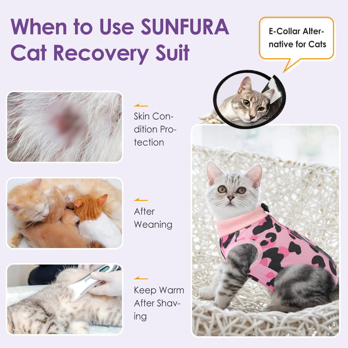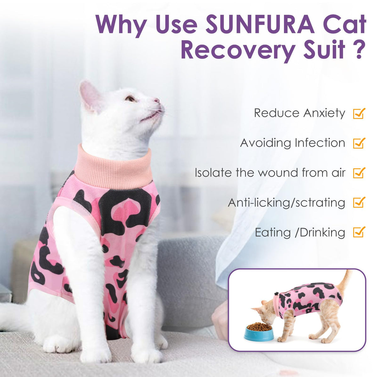 Are You Worried About Your Pet Getting Infected After Surgery? Do You Know How To Help Pacify Pets With Anxiety After Post-Surgery?&Nbsp; At Sunfura, We Provide Professional Cat Recovery Suit For Abdominal Wounds And Skin Diseases. Sunfura Recovery Wear Will Be Your Pet'S Partner And Make Recovery Process More Easier And Pleasant For Everyone! Features: *Sunfura Recovery Suit Is Made Of Soft Cotton. Cotton Fabric Helps The Wound To Heal Safely. The Elasticity Is Comfortable And Fit Well Not Tight. *Three Colors Are Available: Pink, Blue And Purple. No Deformation Or Fading. The Light Color Style Is Easy To Know The Situation Of The Wound So That They Can Get The Timely Care When There Are Accidents. *Wearing Sunfura Recovery Suit On, They Can Eating, Walking And Sleeping. No Bondage. They Are Free And They Can Adapt Quickly. *Convenient For Cats To Pee And Poo, Which Is More Hygienic And Healthy, And Will Not Cause Trouble To The Owner.In Addition, It Helps Cats Develop A Good Lifestyle. Size Information: S: Back Length 9.1'' * Chest 11''-13.4'' * Reference Weight 2.2-4.4 Lb M: Back Length 11.0'' * Chest 13.4''-15.7'' * Reference Weight 4.4-8.8 Lb L: Back Length 14.2'' * Chest 15.0''-18.1'' * Reference Weight 8.8-15.4 Lb Kindly Notes: Please Measure Your Pet Carefully Before Purchase, If The Measurement Is Closed To The End Of The Size Range, Go Up To The Larger Size. Sunfura Can Tell You Anything You Want To Know~ Q:&Nbsp;When To Use The Recovery Suit? A:&Nbsp;After Sterilization/After Surgery/After Weaning/After Shaving. Q:&Nbsp;How Long Can The Recovery Suit Be Took Off? A:&Nbsp;According To Cat'S Physiological Functions, We Suggest Wear It About 3 Weeks Until No Visible Wounds. Package Include:&Nbsp;Cat Recovery Suit *1 (Great Choice For Cats' Recovery Time!)