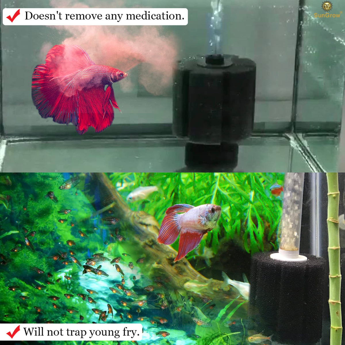 What Size tank can I use this cotton sponge filter for? This cotton sponge filter will work best in tanks up to 10.5 gallons when used singly. If you own a larger tank, these sponge filters suitable for your tank because it comes in three pieces, you can place them on different sides of the tank. Considering their small size, you can easily hide these filters behind plants and other underwater decor. Why should I use an air pump with this filter and not a water pump? We recommend the air pump method as it is much easier for beginner aquarium keepers to set up. You buy this, hook it up to an airline tubing and an air pump...and go. The air pump is noiseless and wont disturb your fish. It can be used in a hospital tank, breeding or rearing tank, or as a tank for fish who prefer a slower current flow such as Betta or Discus. Can I use this sponge filter in conjunction with a HOB (Hang on the back) filter? Yes. Even if you already have another filter in your tank, you can use the sponge filter at the same time to upkeep your tropical fish tank. Your best results will be achieved by placing the sponge filter on one side and the hang-on power filter, or any other filter, on the opposite side. Can I place the filter straight into my aquarium? It is recommended to clean the tank and do the regular weekly water change before installing this filter. Recommendation: Replace this cotton every 5 to 6 months to ensure proper filtration. Steps to Use: 1. First of all, insert the plastic tube in the airline tubing (sold separately). 2. Insert one end of the airline tubing into the sponge filter. 3. Insert the other end of the airline tubing to the air pump. Now your device is ready to work.