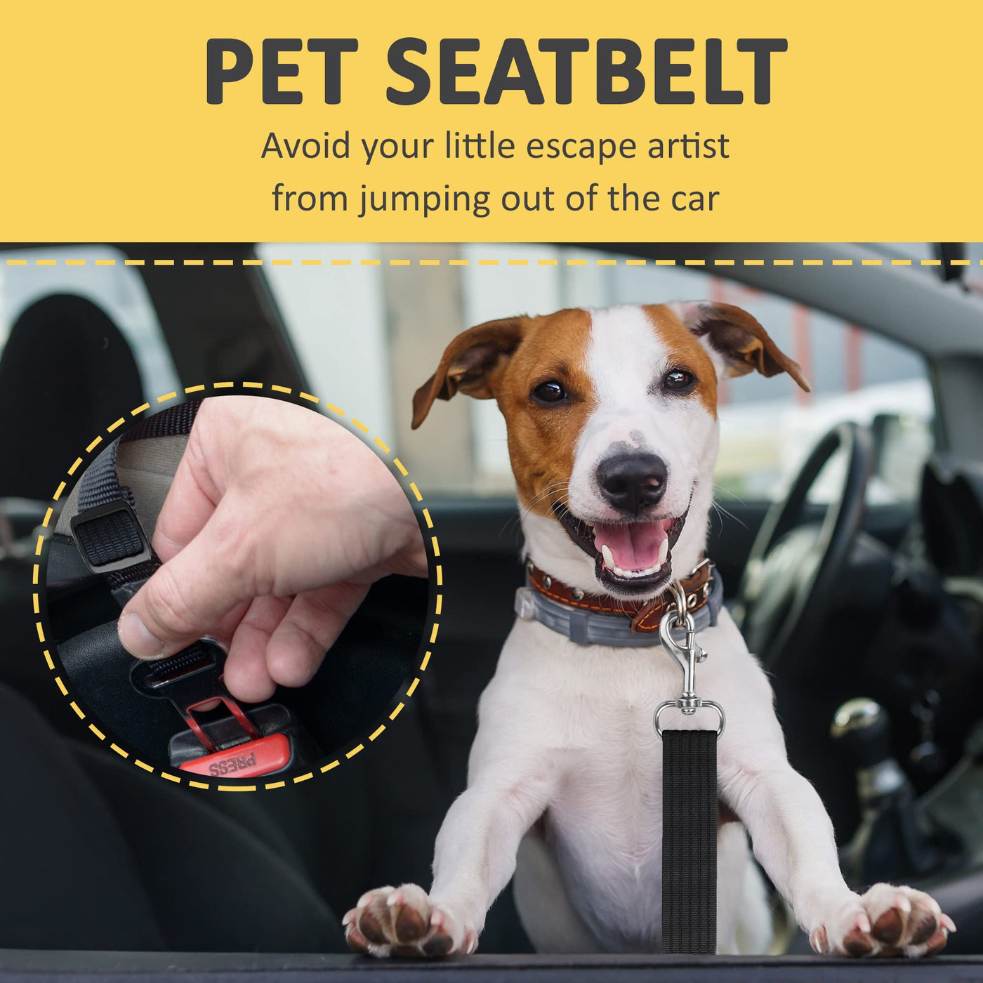 SunGrow Dog Seat Belt for Car, Adjustable Nylon Pet Seatbelt, Supports All Cars, Seatbelt for Dogs in Car, Dog Car Leash Seat Be