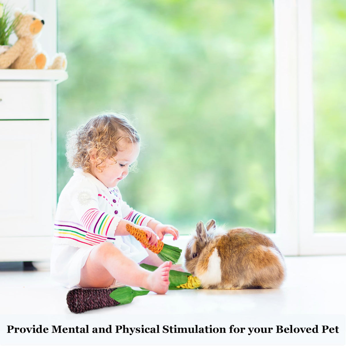 Sungrow Natural Veggie Chew Toys For Rabbits, 5.2 Inches, Woven With 100% Organic Material, Stimulate Your Bunny Rabbits, Bright