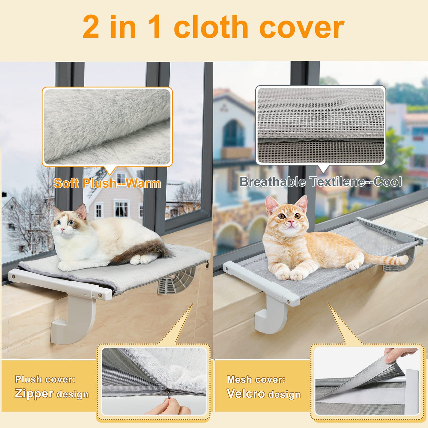 Sunhoo Cat Window Perch Hammock Kitty Bed For Windowsill Bedside Large Cats Shelf Seat Inside With Adjustable Ledge Sturdy Removable Cover Easy Assembly No Suction No Drill Hold 40Lbs 22*13.58In(S)