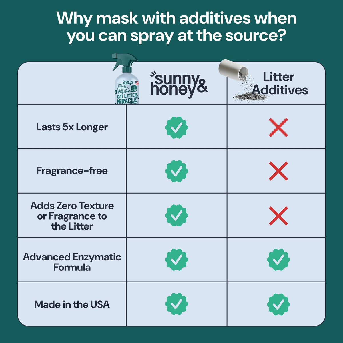 Sunny & Honey Cat Litter Box Deodorizer Is The Easiest Solution For Keeping Your Home Odor Free. Made With An Advanced Biological Formula, Our Cat Odor Eliminator For Litter Box Neutralizes Smells At The Source By Breaking Them Down On A Molecular Level. Unlike Scented Alternatives That May Deter Your Cat From Using Their Litter Box, Our Cat Litter Box Odor Eliminator Is Completely Fragrance-Free, Making It Perfect For Sensitive Cats And Multi-Cat Homes. Free From Harsh Chemicals And Perfumes, Its A Safe And Effective Way To Keep Your Pets Comfortable And Your Home Smelling Like Home. Made In The Usa, Our Litterbox Deodorizer For Cats Is Non-Toxic, Pet-Safe, And Perfect For Families With Multiple Pets. Whether You Use Clumping, Crystal, Biodegradable Litter, Or Even Pee Pads, Sunny & Honey'S Litterbox Odor Eliminator Is Can Handle It All. Not Just For Cats, Its Also Keeps Enclosures For Rabbits, Guinea Pigs, Ferrets, And Reptiles Fresh And Hygienic. Both A Room Deodorizer For Cat Litter Box And A Targeted Odor Eliminator, It Restores Your Homes Natural Scent Without Causing Irritation To Your Pets Or Family. Using Sunny & Honeys Cat Odor Eliminator For Home Is Quick And Easy. Simply Scoop Out Any Waste, Shake The Bottle, And Lightly Spray The Target Area For Immediate Freshness. Apply It Between Litter Changes To Maintain A Continuously Odor-Free Environment. With Its 32 Fl Oz Size, This Powerful Yet Gentle Spray Delivers Big Results With Just One Spray, Making It A Must Have For All Pet Parents. Say Goodbye To Kitty Litter Smells And Hello To A Fresh Home With Sunny & Honey Cat Litter Box Deodorizer.