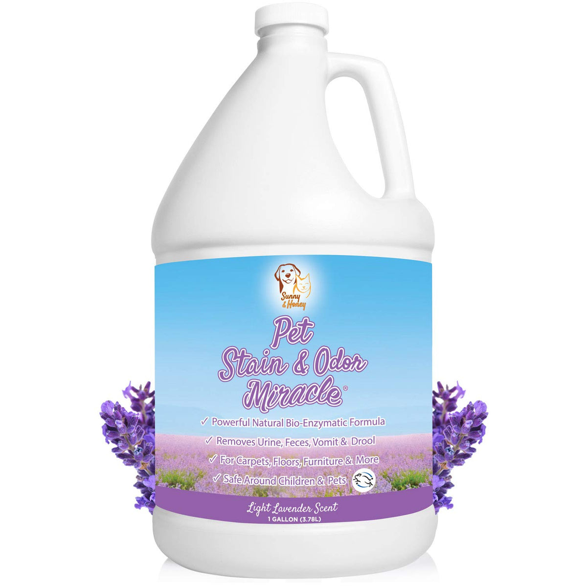 Sunny & Honey Pet Stain & Odor Miracle - Enzyme Cleaner For Dog And Cat Urine, Feces, Vomit, Drool (Light Lavender Scent, 1 Gallon)