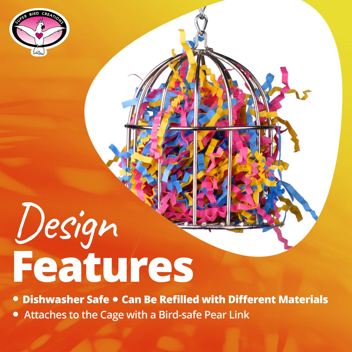 Super Bird Creations SB476 Mini Stainless Steel Foraging Treat Cage -Ideal Bird Training Toy Enriched Playtime - Canary, Finch,