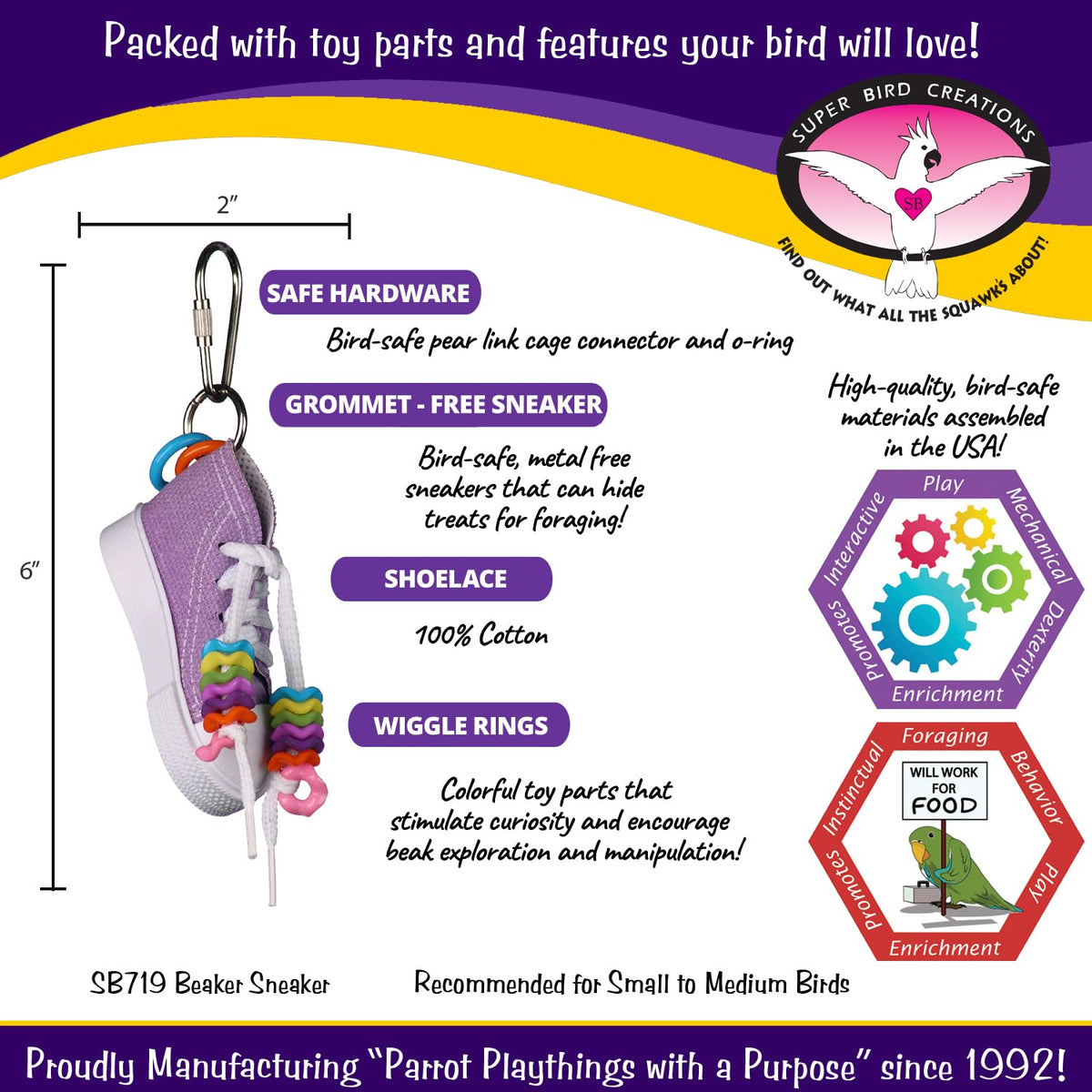 Super Bird Creations SB719 Beaker Sneaker Bird Toy for Parrotlets, Parakeets, Cockatiels, Lovebirds, ringnecks, Medium Conures -