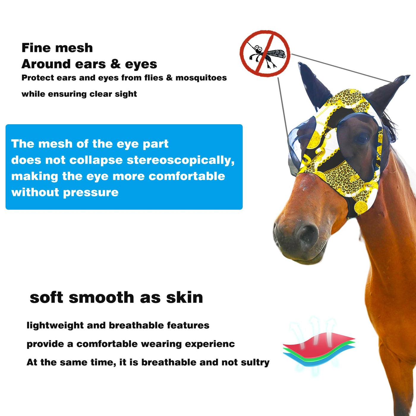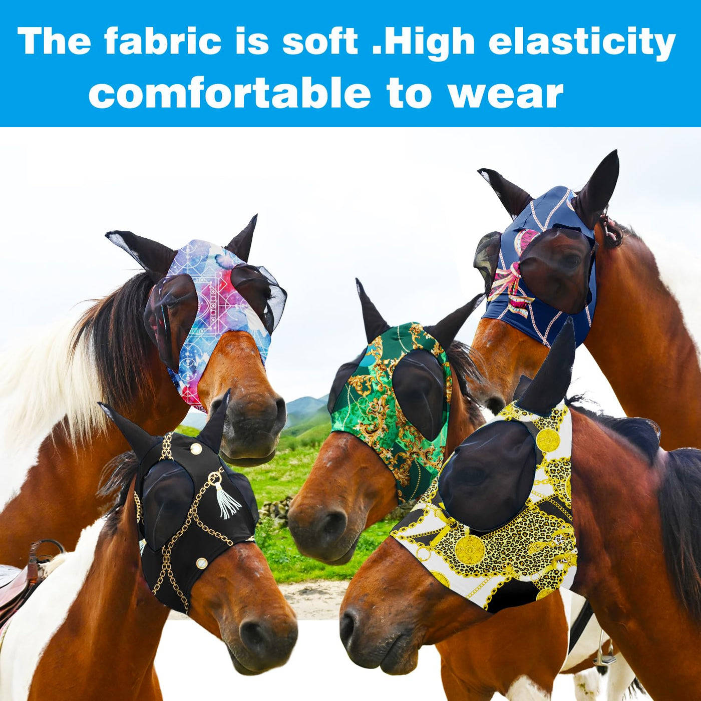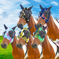 Super Comfort Fly Marsks for Horses of 5pcs Set-Horse FlyMask with Ears- Elasticity Fly Mask with UV Protection(Size:L