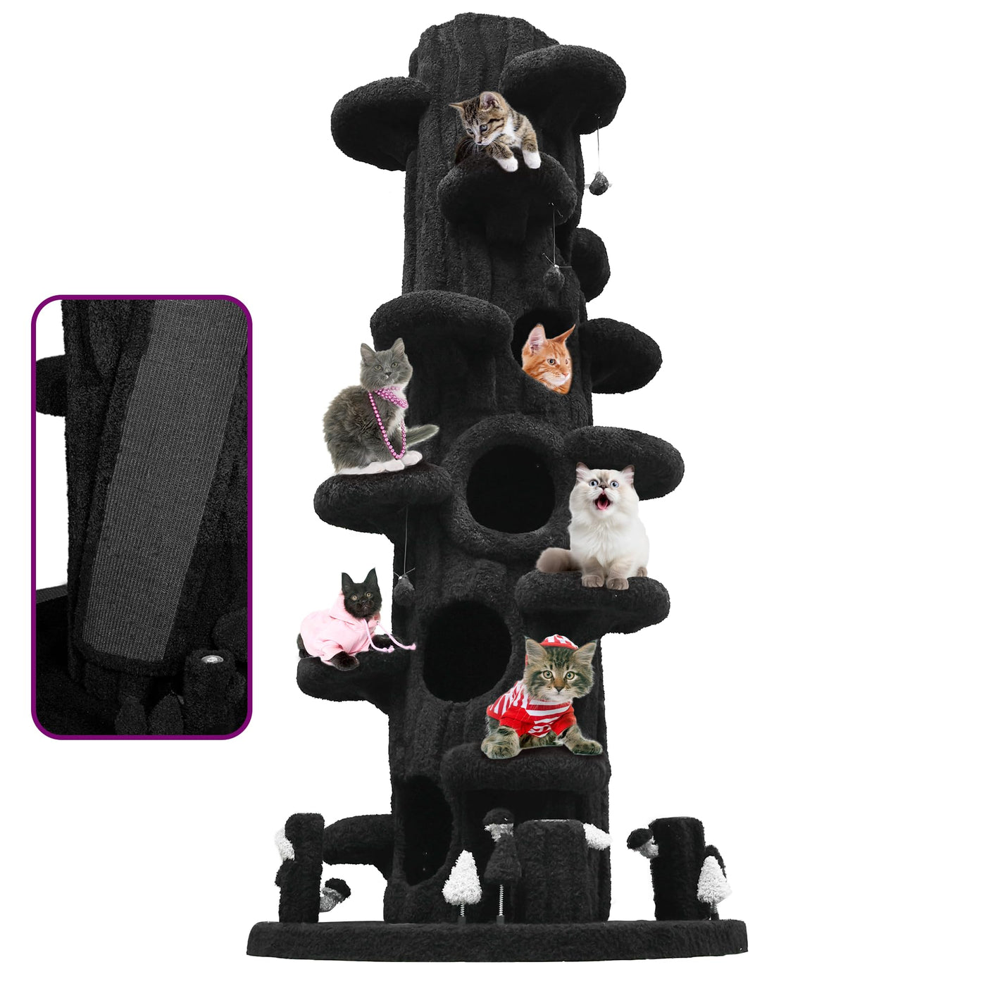 Super Large Cat Tree - Multi-Level Cat Tower With Plush Beds, Scratching Posts, And Ramps - Perfect For Multi-Cat Households Give Your Cats The Ultimate Luxury With Our Super Large Cat Tree, Designed To Cater To The Needs Of Multiple Cats And Provide Endless Fun, Comfort, And Relaxation. With Its Towering, Multi-Level Design, This Cat Tree Is Perfect For Active Cats Who Love To Climb, Explore, And Nap. Key Features: - Spacious Multi-Level Design: This Towering Cat Tree Features Multiple Levels, Ramps, And Platforms, Providing Your Cats With Plenty Of Room To Climb, Explore, And Relax. Whether They'Re Lounging On A High Perch Or Racing Up A Ramp, Your Cats Will Enjoy Hours Of Entertainment. &Nbsp;- Multiple Plush Beds: Designed To Accommodate Several Cats, This Tree Includes Multiple **Soft, Cozy Cat Beds** At Various Levels. Each Bed Is Large Enough For Cats To Stretch Out Comfortably, Offering Them A Perfect Place To Sleep Or Relax. - Durable Scratching Posts: Equipped With Sturdy **Sisal-Wrapped Scratching Posts**, This Tree Allows Your Cats To Indulge In Their Natural Scratching Behavior. It Helps Keep Their Claws Healthy And Prevents Damage To Your Furniture. - Premium Soft Plush Upholstery: Covered In High-Quality **Plush Fabric**, This Cat Tree Provides A Cozy And Inviting Space For Your Cats To Rest, Play, And Sleep. The Soft Surface Is Gentle On Their Paws, Ensuring A Comfortable Experience All Day Long. - Ideal For Multi-Cat Households: Perfectly Designed For Homes With Multiple Cats, This Super-Large Cat Tree Offers Ample Space And Private Spots For Each Pet, Reducing Territorial Disputes And Ensuring A Peaceful Environment. Assembly: Easy To Assemble With All Tools Included. Enhance Your Cats Lifestyle And Bring Joy To Your Home With This Super Large Cat Tree, The Perfect Playground And Resting Spot For Your Furry Companions. With Its Combination Of Spacious Design, Durable Materials, And Plush Comfort, It'S An Essential Addition For Any Cat Owner.