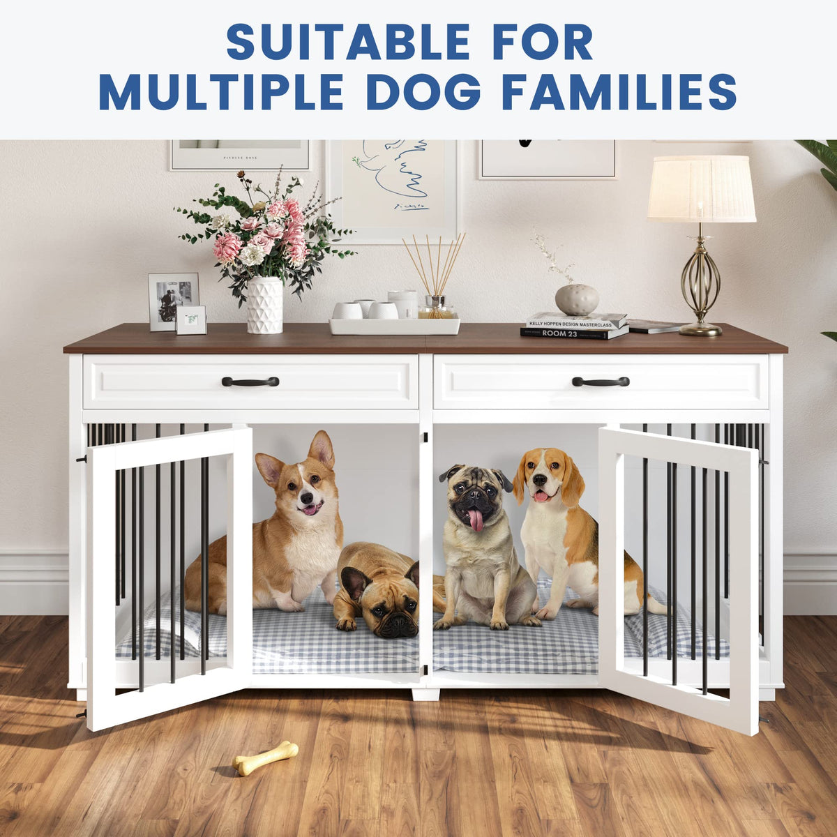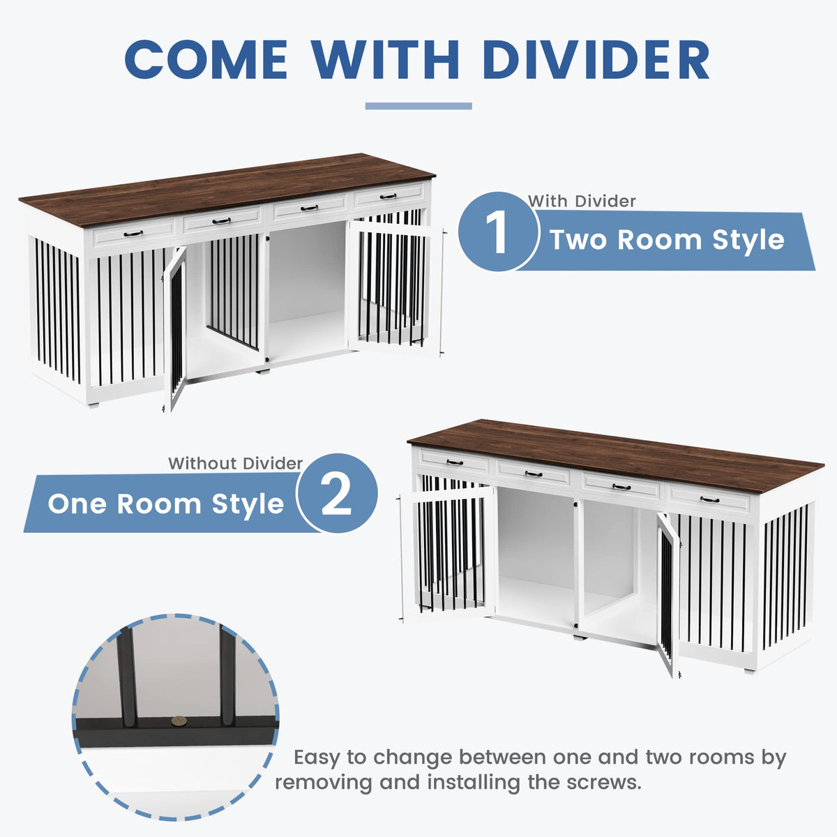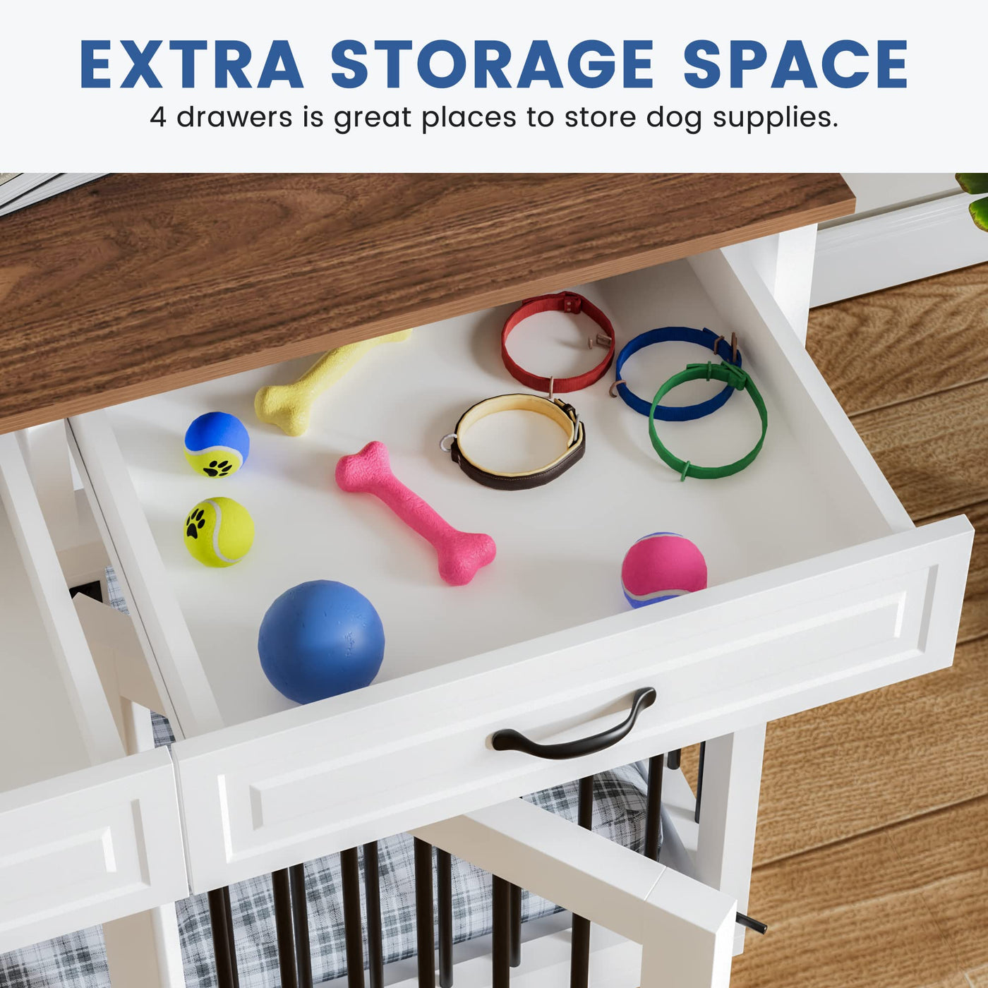 Super Large Dog Crate Furniture, 92.9 Wooden Dog Crate Kennel with 4 Drawers and Divider, XXXL Heavy Duty Dog Crates Cage Furni