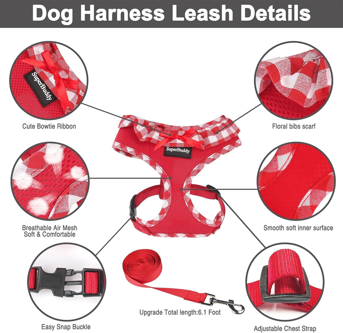 Superbuddy Upgraded Soft Mesh Dog Harness Super Breathable Lightweight Pet Harnesses For Puppy Dogs Outdoor Walking, Red Dog Har