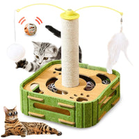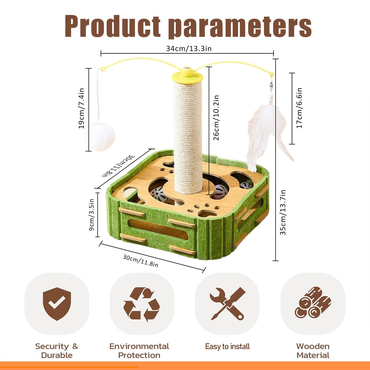 Superpaws Cat Puzzle Toys Interactive Dancer Teasing Box With Squeaky Toys And Scratching Felt,Kitten Track Ball Toy For Indoor