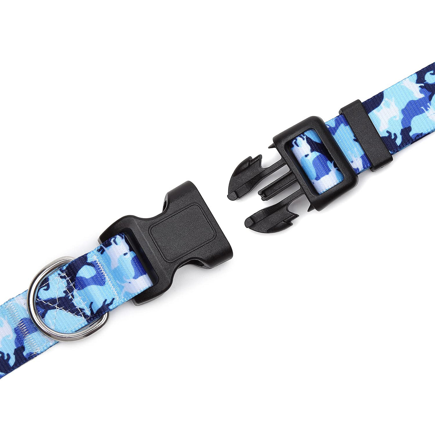 Suredoo Adjustable Dog Collar With Patterns, Ultra Comfy Soft Nylon Breathable Pet Collar For Small Medium Large Dogs (M, Dog Camouflage Blue)