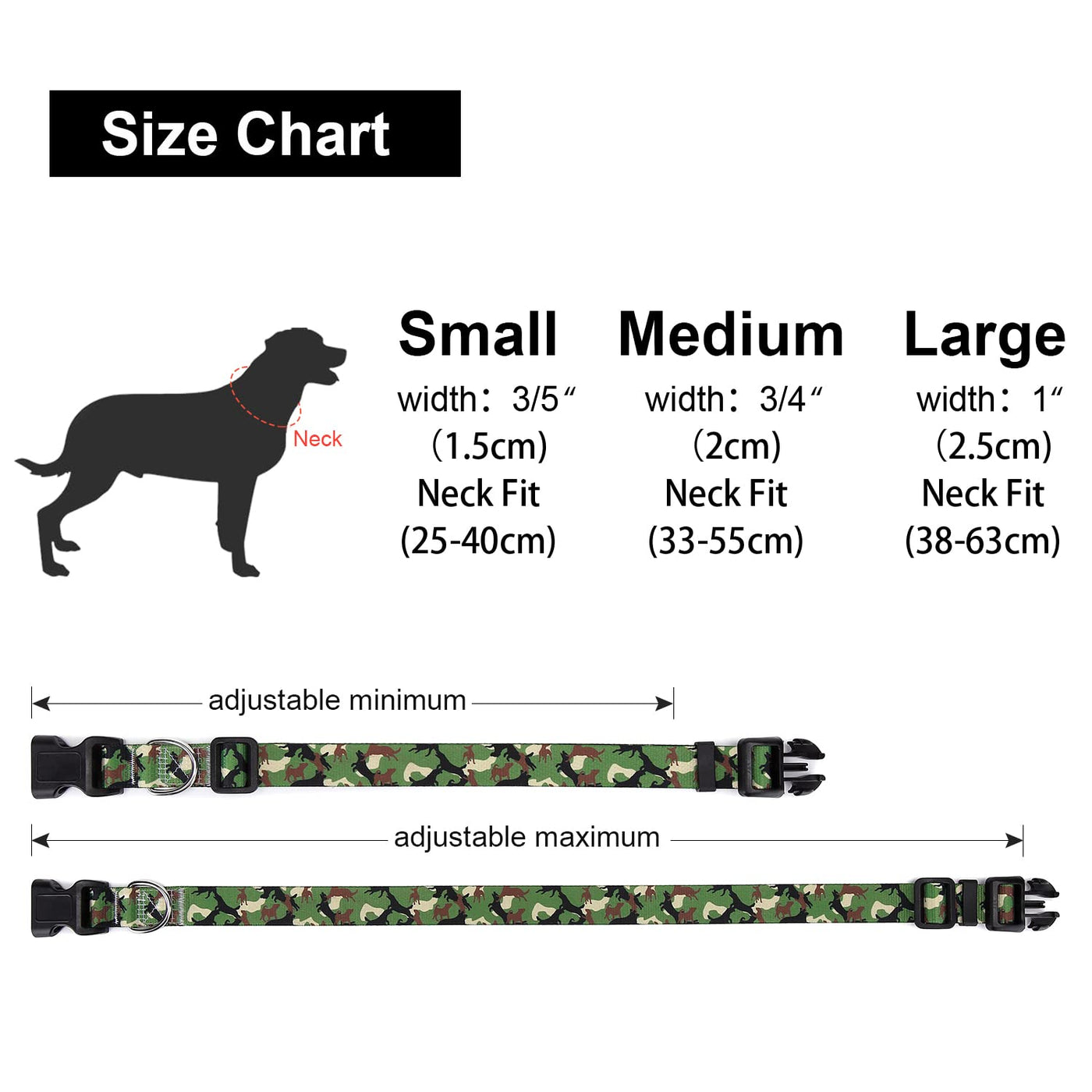 Suredoo Adjustable Dog Collar With Patterns, Ultra Comfy Soft Nylon Breathable Pet Collar For Small Medium Large Dogs (M, Dog Camouflage Green)