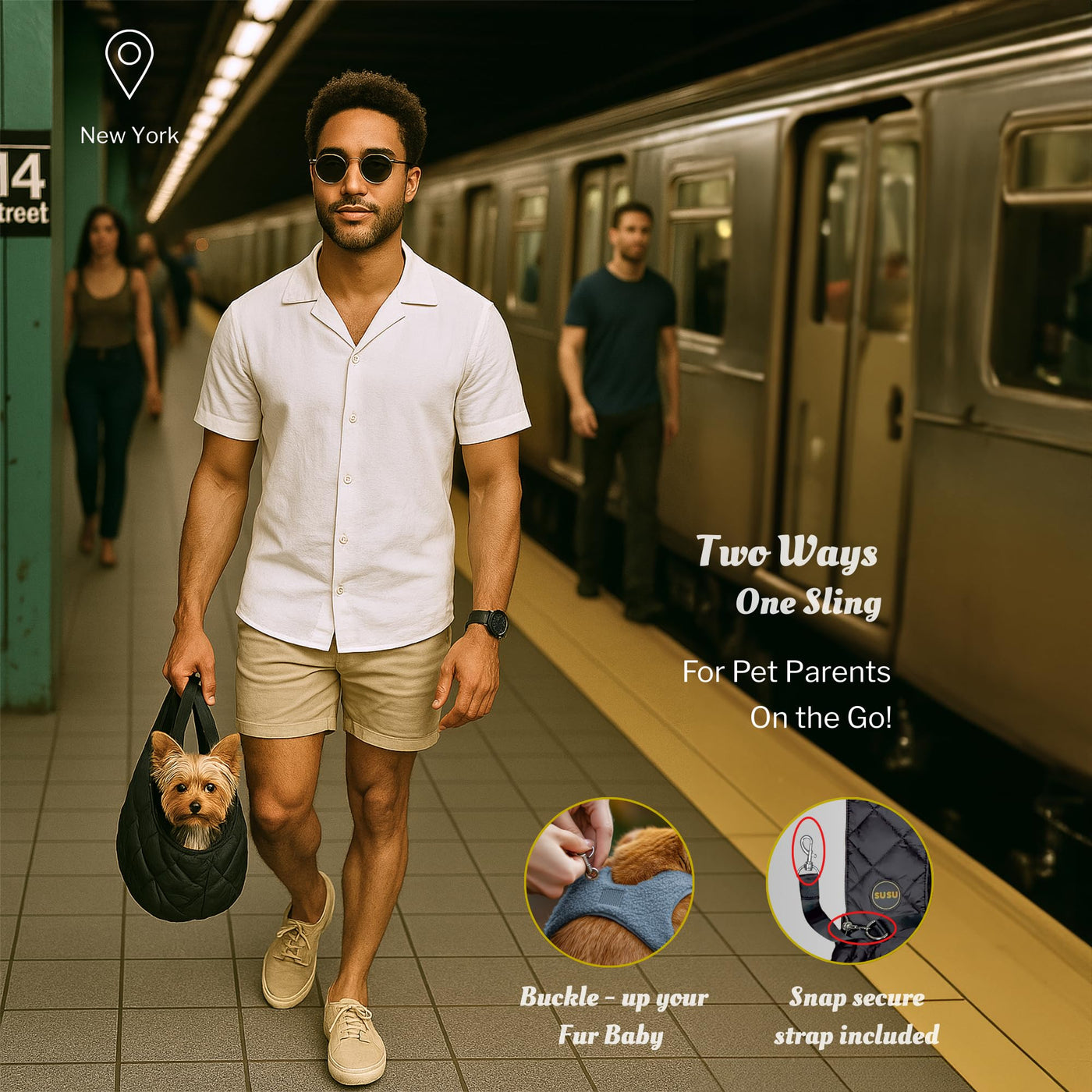 Discover The Ultimate Pet Carrier Solution With The Susu Pet Co. Cat Carrier Sling Bag. Designed For Pet Owners Who Need Versatility, Comfort, And Style, This Pet Carrier Sling Bag Ensures Your Furry Friend Is Secure And Comfortable During Travel, Errands, Or Adventures. Our Cat Carrier Sling Isnt Just Another Cat Carrier Bag. Its Crafted With Clinically Tested, Pet-Safe Fabric That Is Soft On Your Pet'S Skin. The Cat Carrier Soft Material Is Lightweight Yet Durable, Perfect For Everyday Use And Small Pets. Key Features: Versatile Carrying Option: This Cat Sling Carrier Offers Hands-Free Convenience, Making It Ideal For Everyday Use, Whether You Need A Cat Travel Carrier Or A Short Trip Companion. Safety Assured: Equipped With A Secure Safety Belt And An Adjustable Cat Swaddle Carrier Design, This Pet Carrier For Cat Ensures Your Pet Stays Safe And Snug During Your Travels. Comfortable And Soft Material: The Cat Carrier Soft Fabric Offers Ultra-Light Comfort, Making This Cat Pouch Carrier A Great Choice For Small Dogs And Cats Up To 10 Lbs. Its Also Breathable To Keep Your Pet Cool. Convenient Storage: Two Spacious Zipper Pockets (7 Inches Each) Provide Space For Essentials Like Keys, Phones, And Treats. This Makes The Pet Carrier Sling Bag Perfect For Busy Pet Owners Who Need Quick Access To Essentials. Whether Youre Looking For A Kitten Carrier, A Small Dog Carrier, Or A Dog Sling Carrier, The Susu Pet Co. Cat Sling Provides The Comfort And Security Your Pet Deserves. It'S Also Machine Washable, Making It Easy To Keep Clean And Fresh.