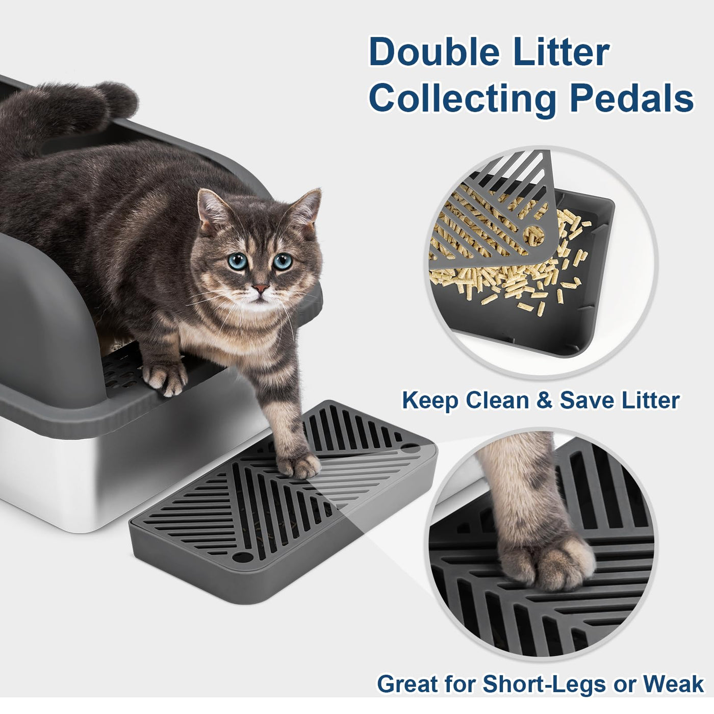 Suzzipaws 8 Deep Stainless Steel Litter Box with Lid Extra Large Cat Litter Box for Big Cats XL Metal Litter Pan Tray with High