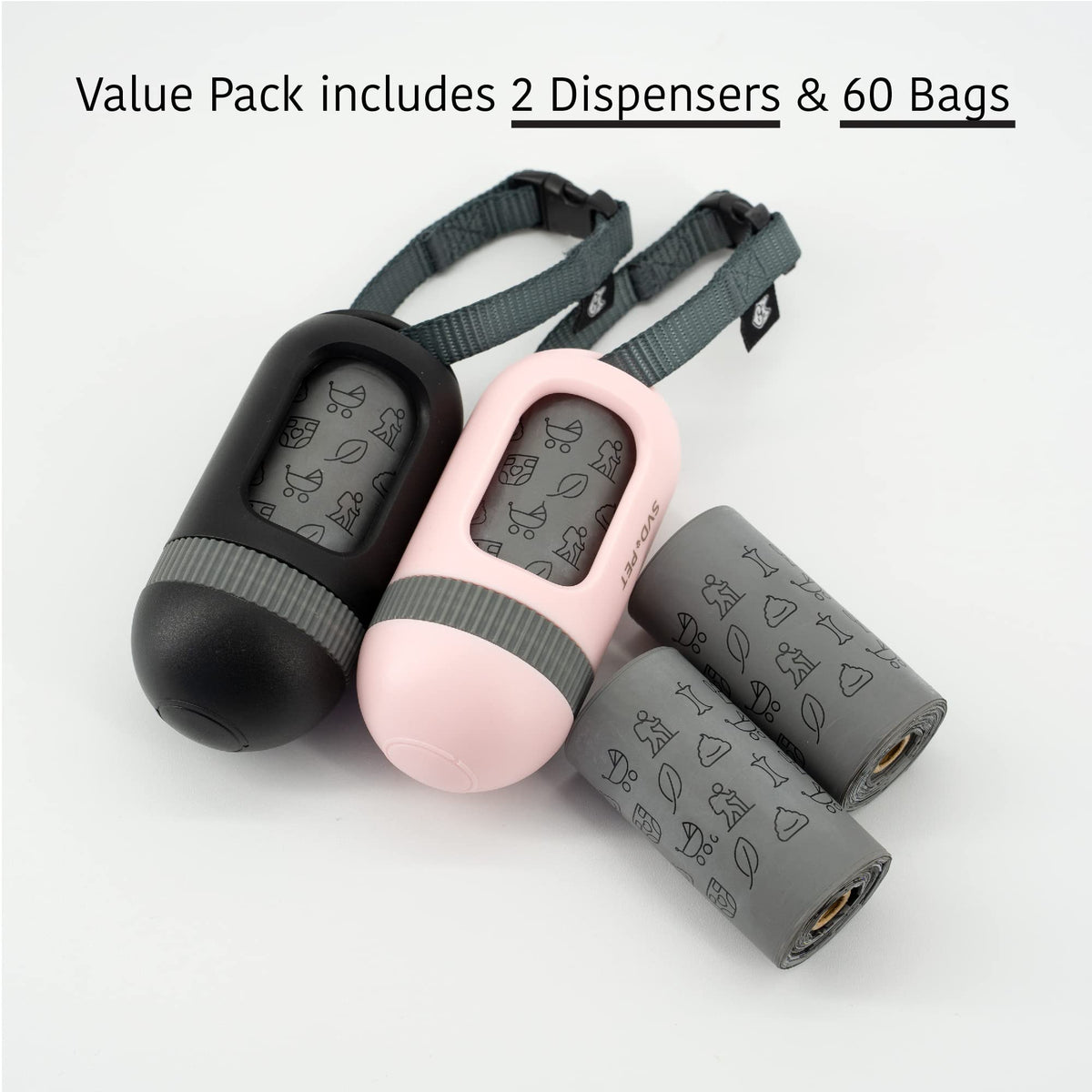 Svd.Pet [2-Pack] Retractable Waste Bag Dispensers Gift Set, 2 Pet Waste Bag Holders With 60 Large Waste Bags, Dog Walking Access