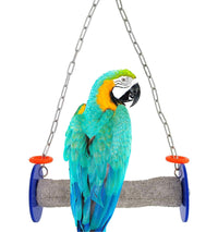 Q: What materials are used in the Sweet Feet and Beak Roll Bird Swing?A: The Sweet Feet and Beak Roll Bird Swing is made from high-quality, non-toxic materials, including a concrete blend for the perch and a zinc-free hanging chain. The swing features break-resistant plastic rings and ends, ensuring both safety and durability for your feathered friends.
