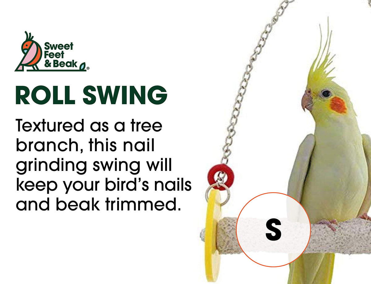 Sweet Feet And Beak Roll Bird Swing - Pumice Perch Bird Toys Trims Nails And Beaks, Safe And Non-Toxic Bird Cage Accessories For Small And Large Birds, Swinging Toys Birds Will Love, Small 7.5 Inches