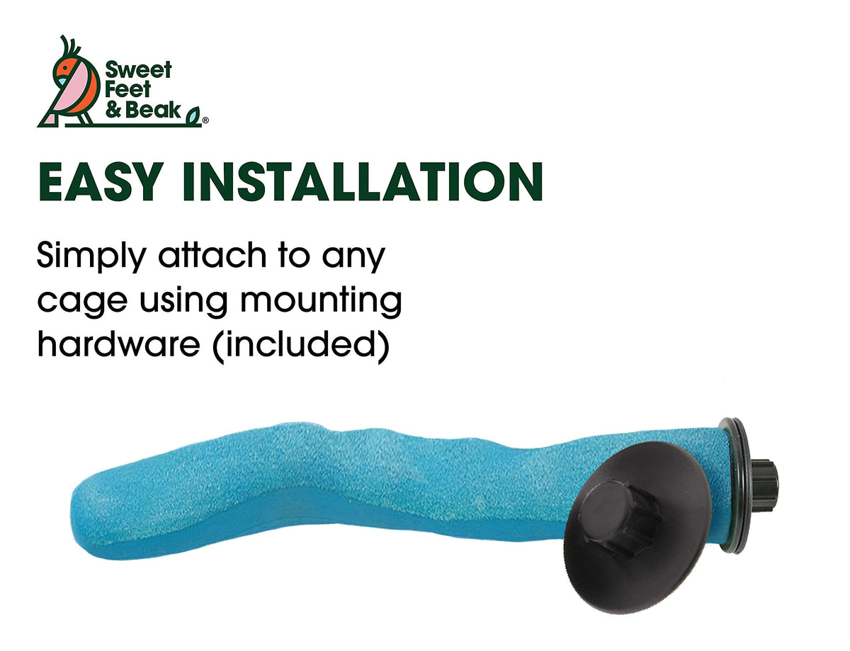 Q: Is the Sweet Feet and Beak perch safe for my bird?A: Yes, the perch is made from non-toxic materials and comes with a safety cap for mounting, ensuring there are no sharp metal parts exposed that could harm your bird.