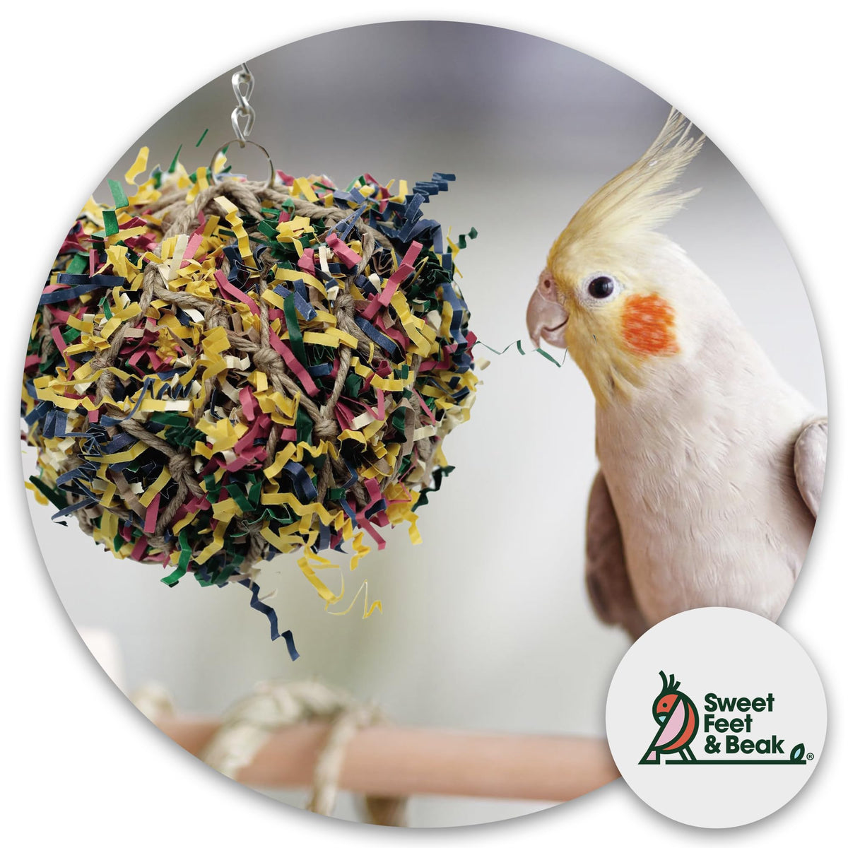 Sweet Feet And Beak Super Shredder Ball - Bird Cage Accessories To Keep Your Bird Busy Foraging For Hidden Treasures - Non-Toxic, Easy To Install Bird Foraging Toys For Medium Sized Birds - 5 Inch
