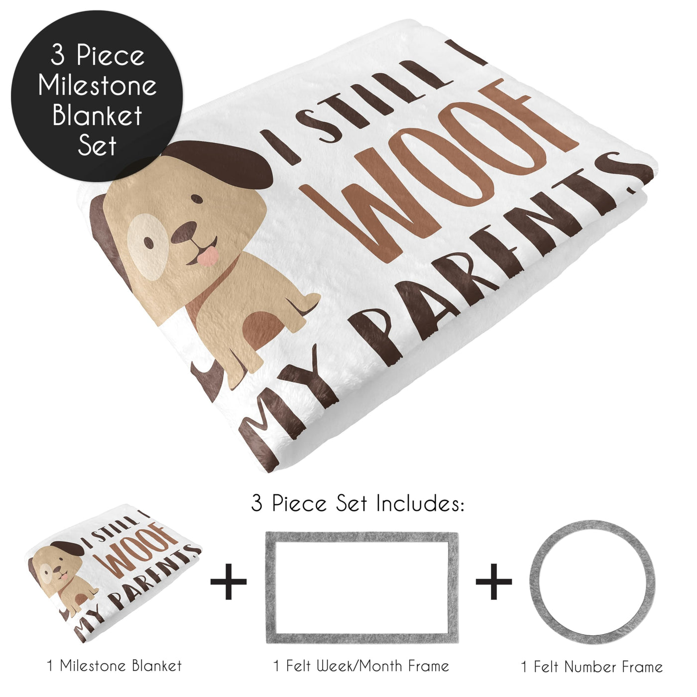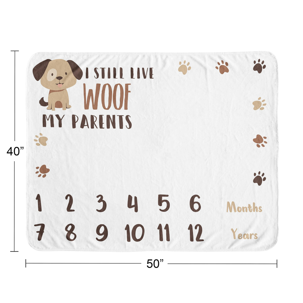 Sweet Jojo Designs Brown And White Doggy Dog Birthday Puppy Milestone Blanket - Monthly Yearly Photo Op Growth Memory Gift Set P