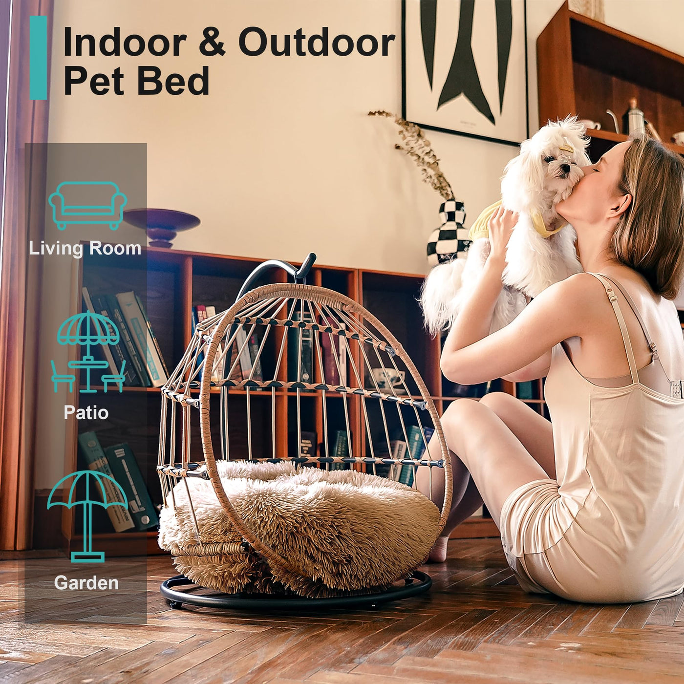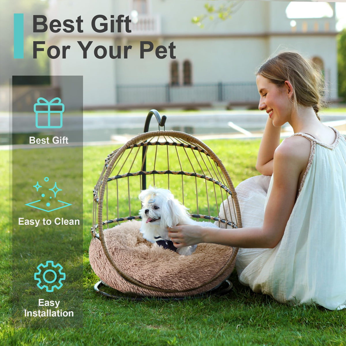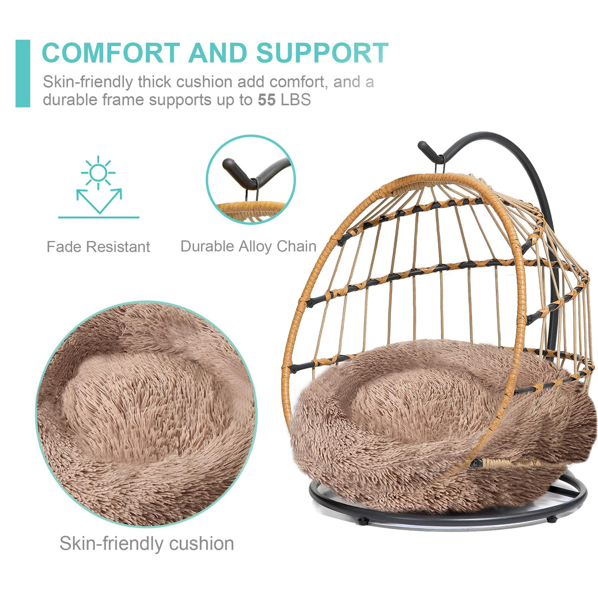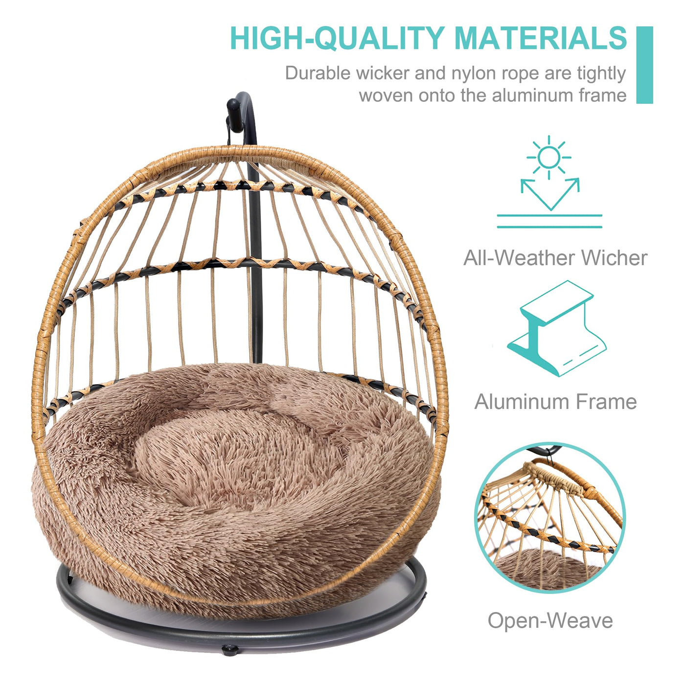 Switte Cat Bed Pet Egg Chair Hanging Swing Bed Hand Made Rattan Hammock With Removable Soft Cushion Easy Cleaning Suitable Small