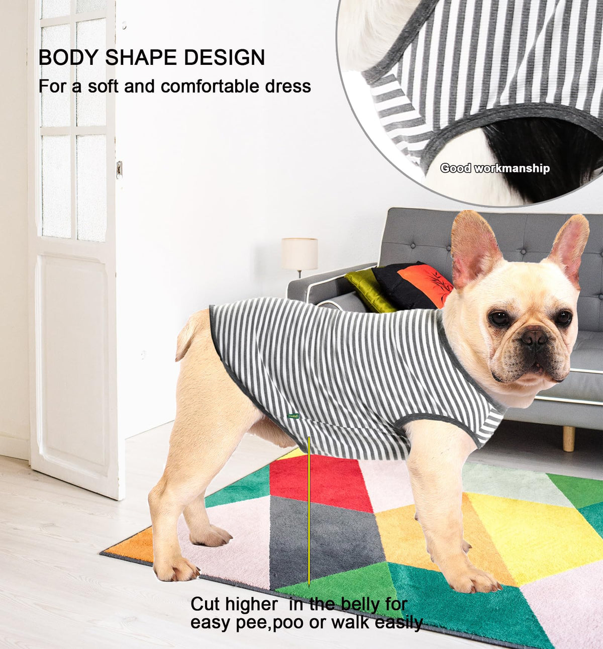 Sychien Dog Combed Cotton Tee Shirts,Soft Breathable Sun Protection Small Puppy T-Shirt For Boy Girl Dogs,2 Pack Grey White Stri
