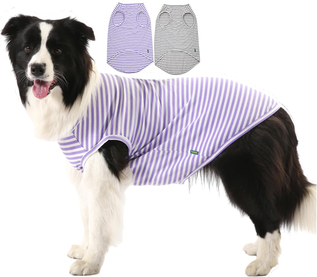 Sychien Dog Cooling Shirt,Summer Combed Cotton Breathable Boy Girl XX-Large T-Shirts,Purple Grey White Striped XXL