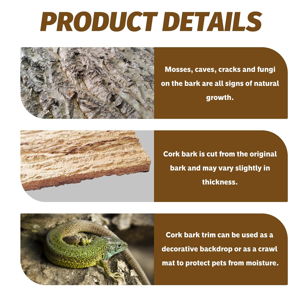 Sysmashing 2PCS Cork Terrarium Background 15.7x11.8in Natural Cork Large Bark Backdrop Reptile Climbing Mat Habitat Decor for Sp