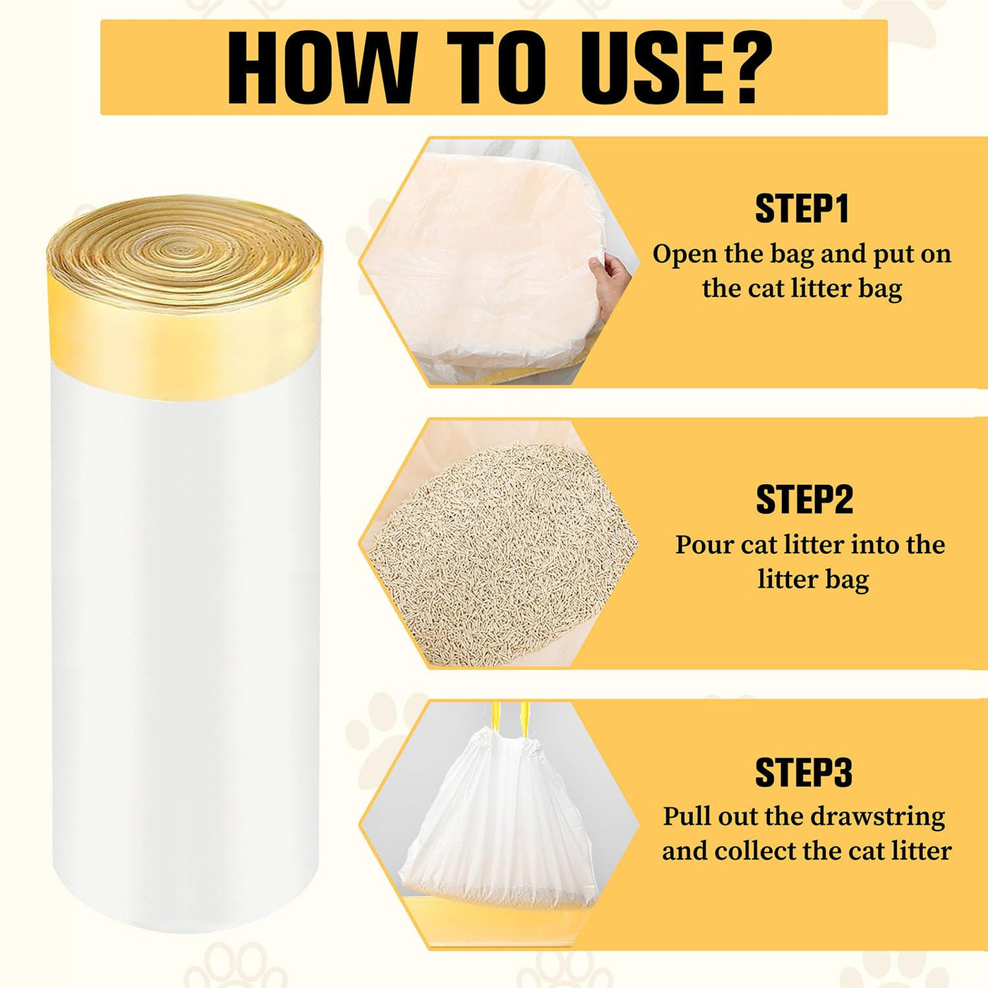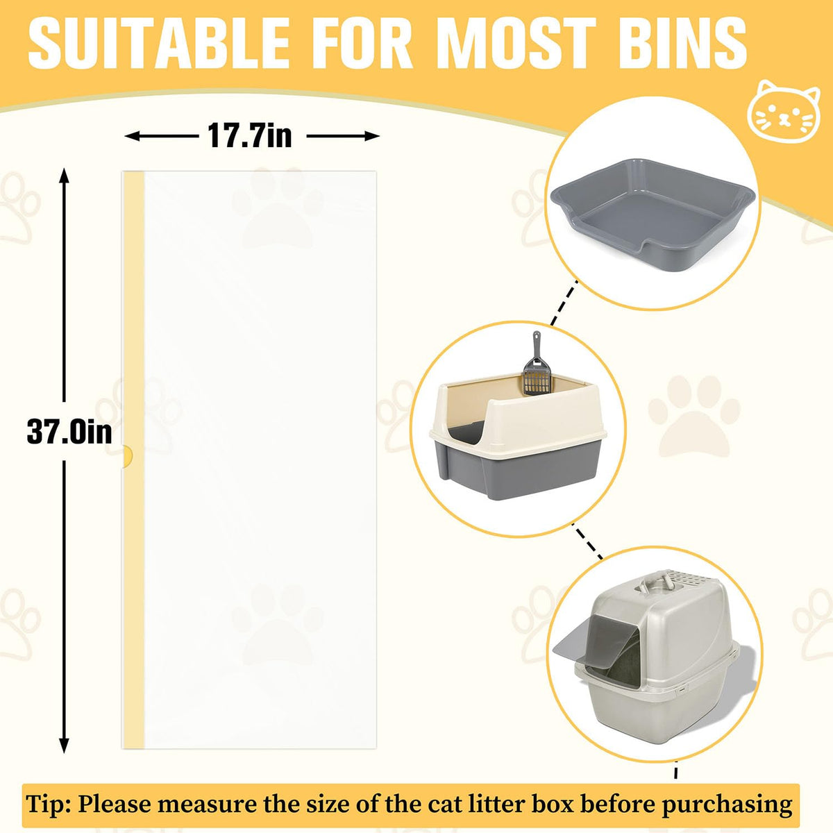 Sysmashing 60 Count Extra Thick Cat Litter Liners 37X18 - Leakproof & Odor Control | Heavy Duty Drawstring Bags For Jumbo Li