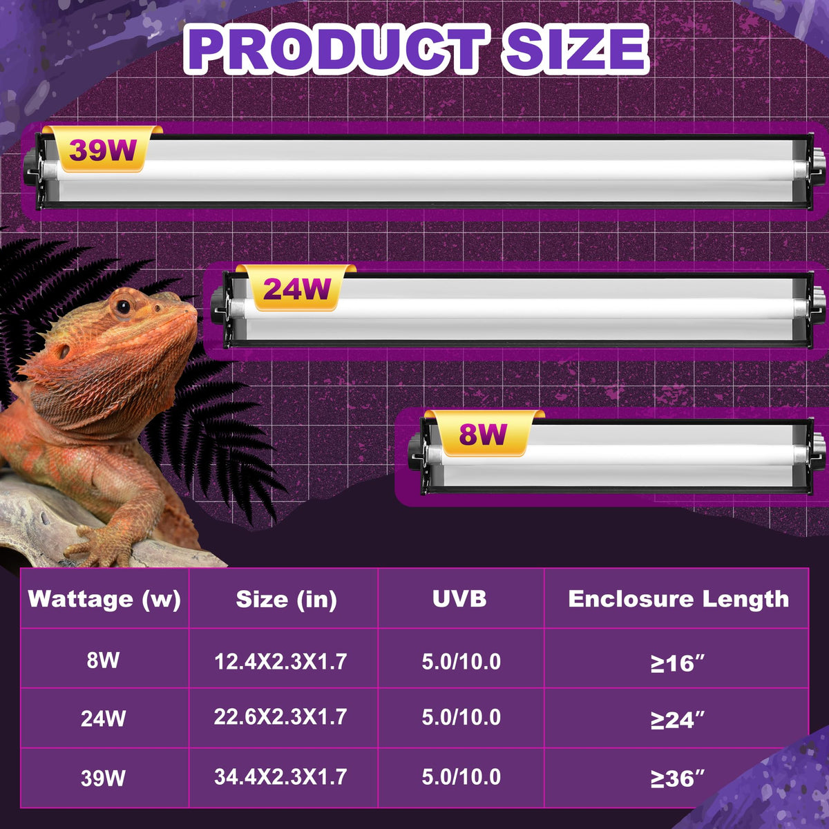 T5 Ho Uvb Lighting Combo Kit, 24W Reptile Light Fixture With Fluorescent Light Bulbs, Tropical 5.0 Uvb Light For Reptiles And Am