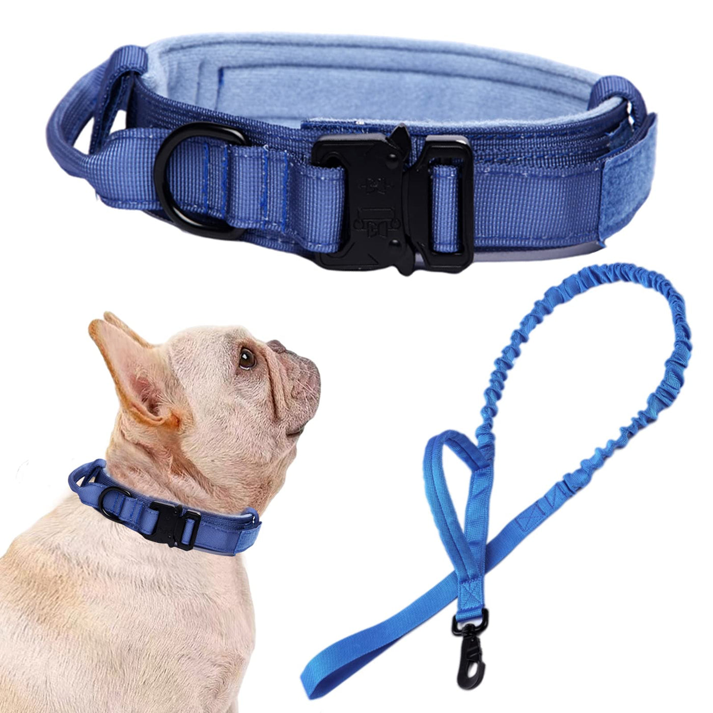 Tactical Dog Collar And Leash Set Tactical Dog Collar With Handle Bungee Leash Adjustable Military Training Nylon Collar Dog Training Collar Leash Set With Control Handleand Metal Buckle(Dark Blue S