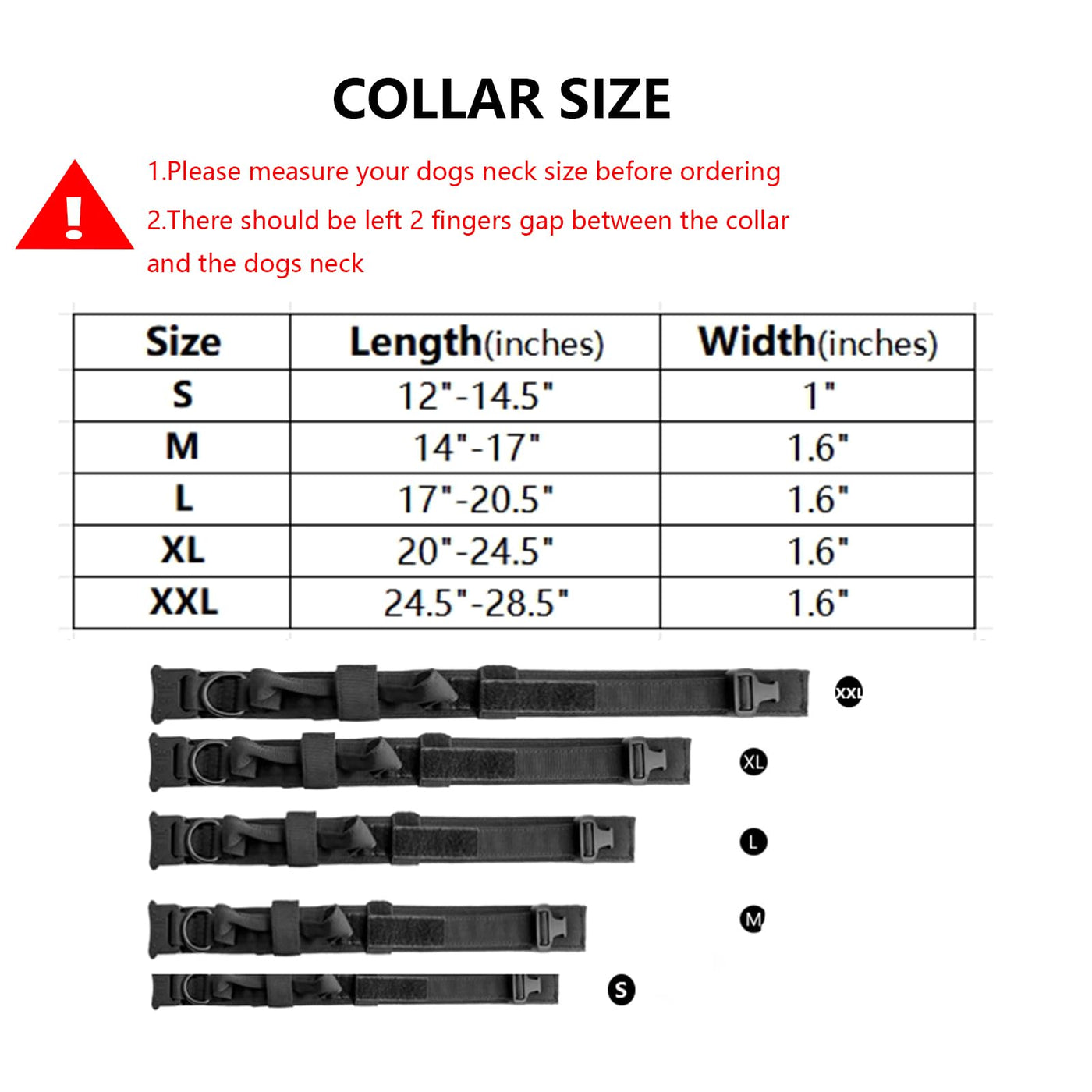 ? Premium Material ?-- Tactical dog collar is made by 1000D reinforced nylon fabric and strong metal buckle which is very durable wear-resisting highly recommended by military and police equipment fans.