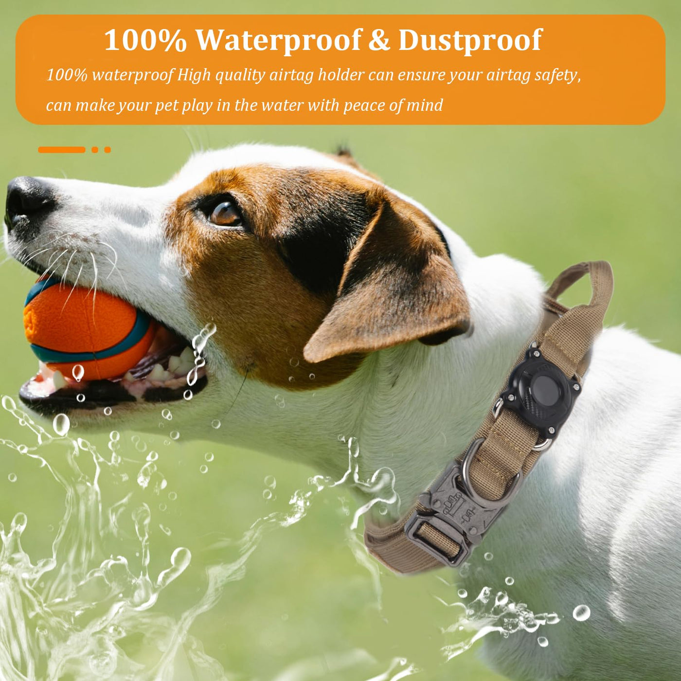 Tactical Dog Collar With Airtag Holder Waterproof Airtag Dog Collar With Control Handle And Metal Buckle Adjustable Heavy Duty D