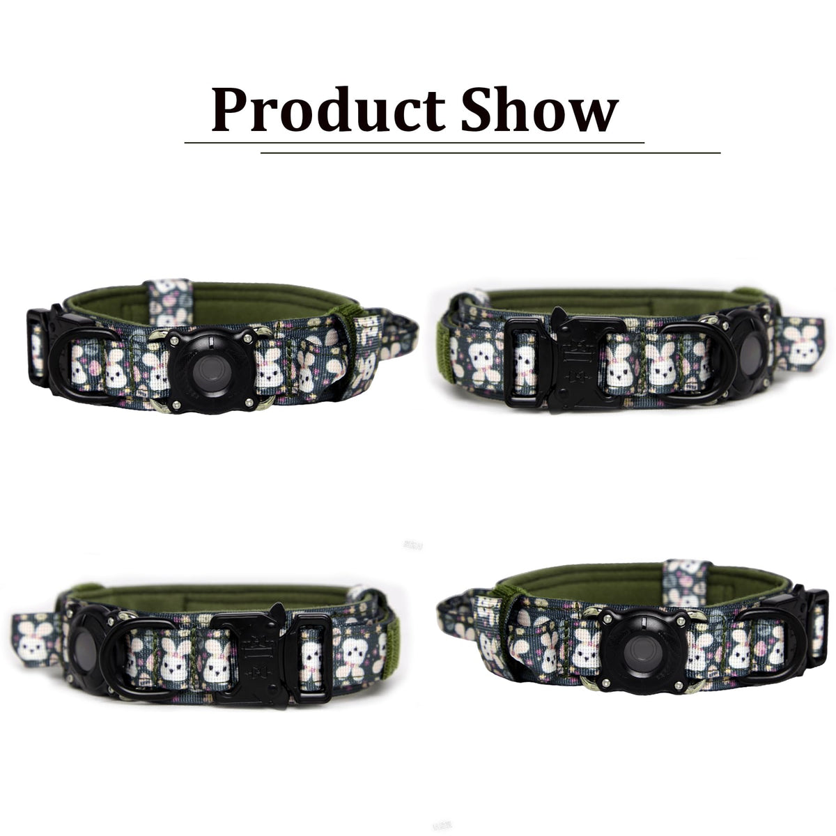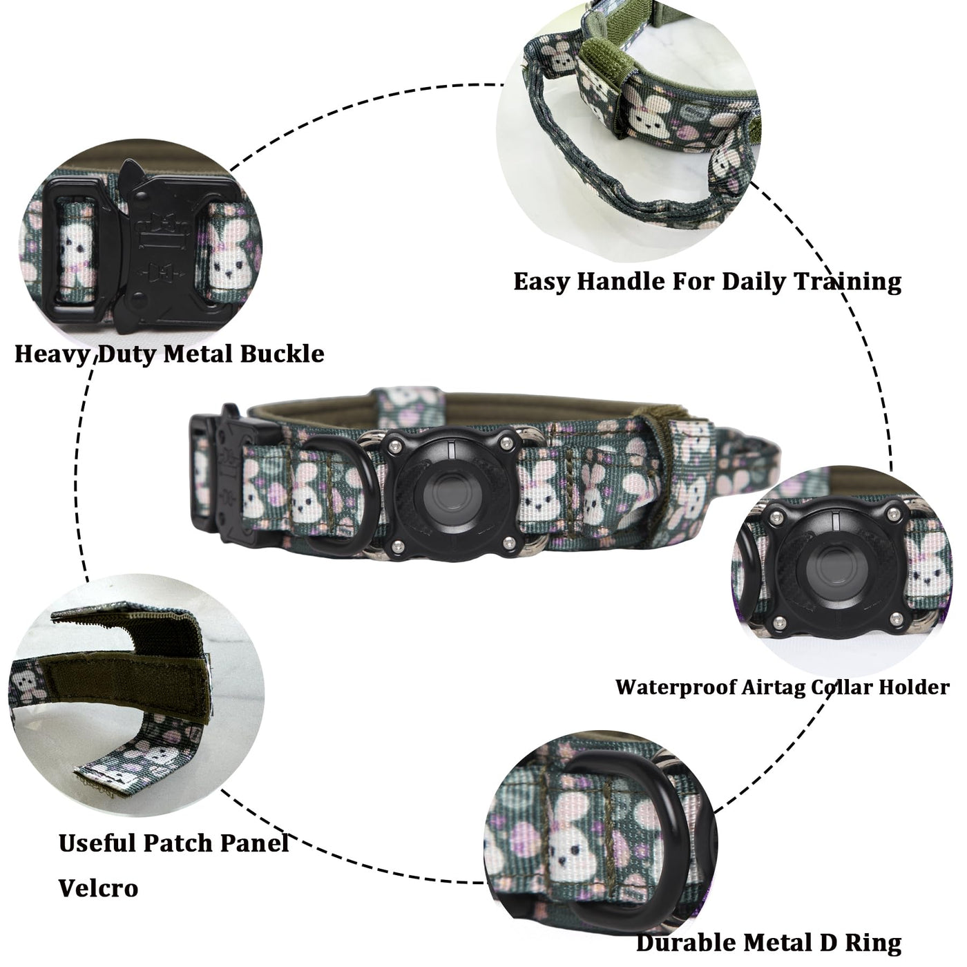 Tactical Dog Collar With Airtag Holder Waterproof Dog Airtag Collar With Control Handle (Rabbit