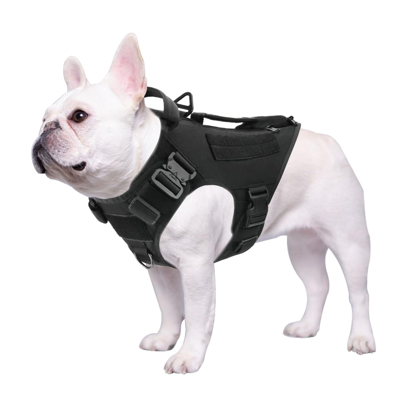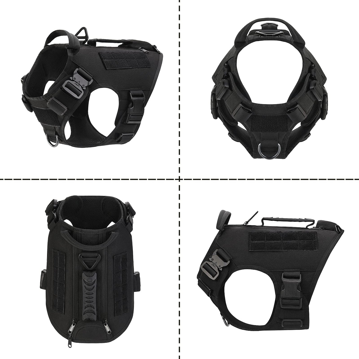 Q: Is this harness suitable for pulling dogs?A: Yes, the Tactical Dog Harness is designed to minimize pulling with its no-pull handle feature, which allows for better control during walks and training. The adjustable straps ensure a secure fit, reducing movement and twisting, making it ideal for dogs that tend to pull.