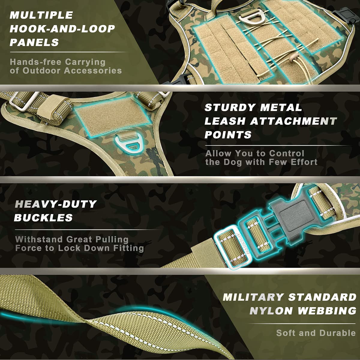 Tactical Dog Harness Large,Military Service Weighted Dog Vest Harness Working Dog Molle Vest With Loop Panels,No-Pull Training Harness With Leash Clips For Walking Hiking Hunting(Camo,L)