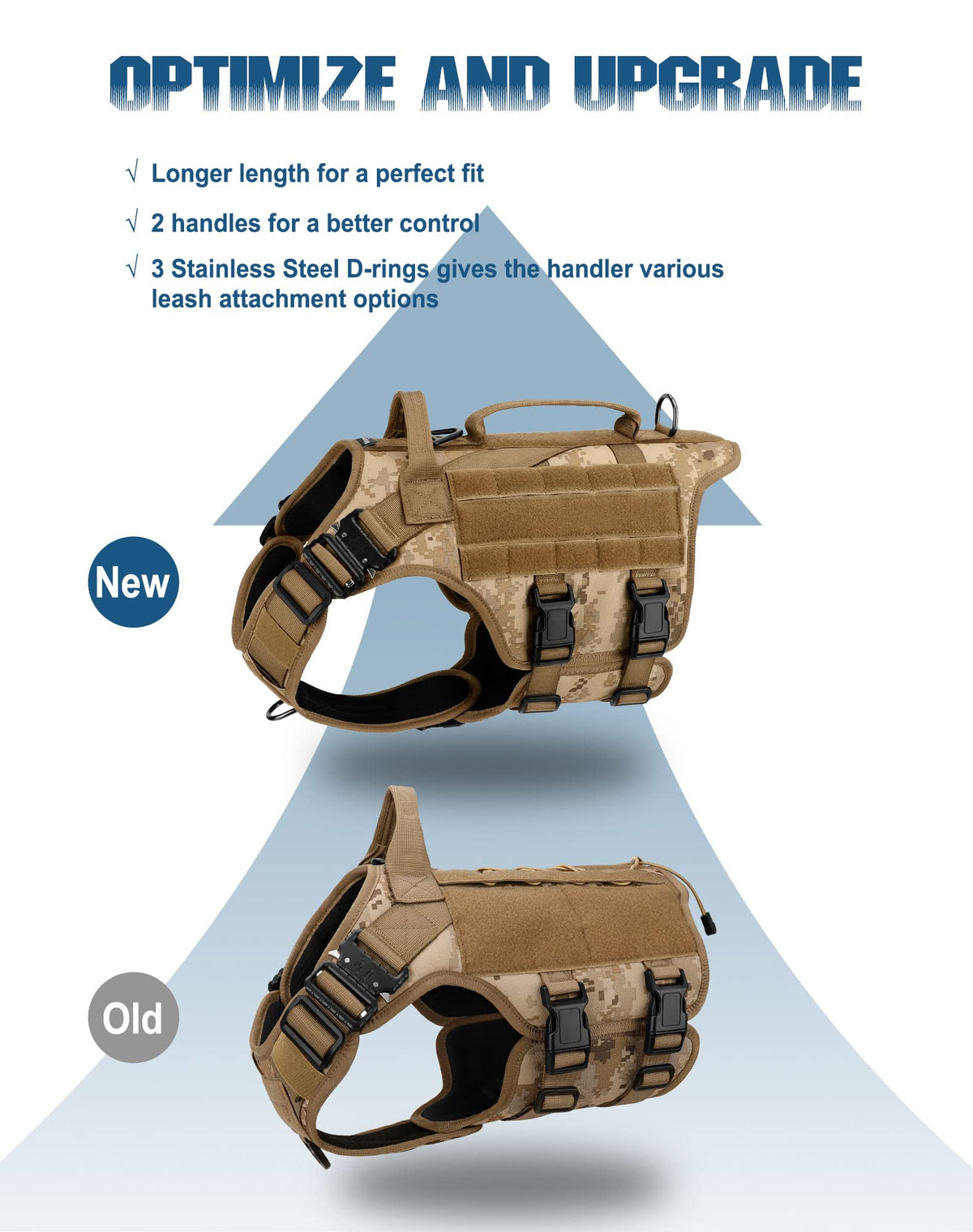 [Longer Length for Oerfectly Fit] - PETNANNY tactical dog harness for large dogs update designed with oerfectly fit, zero-hindrance structure, has plenty of clearance in their armpit area that doesnt restrict shoulder and forearm movement. Multiple adjustment points allow for a custom fit to different medium large breed dog