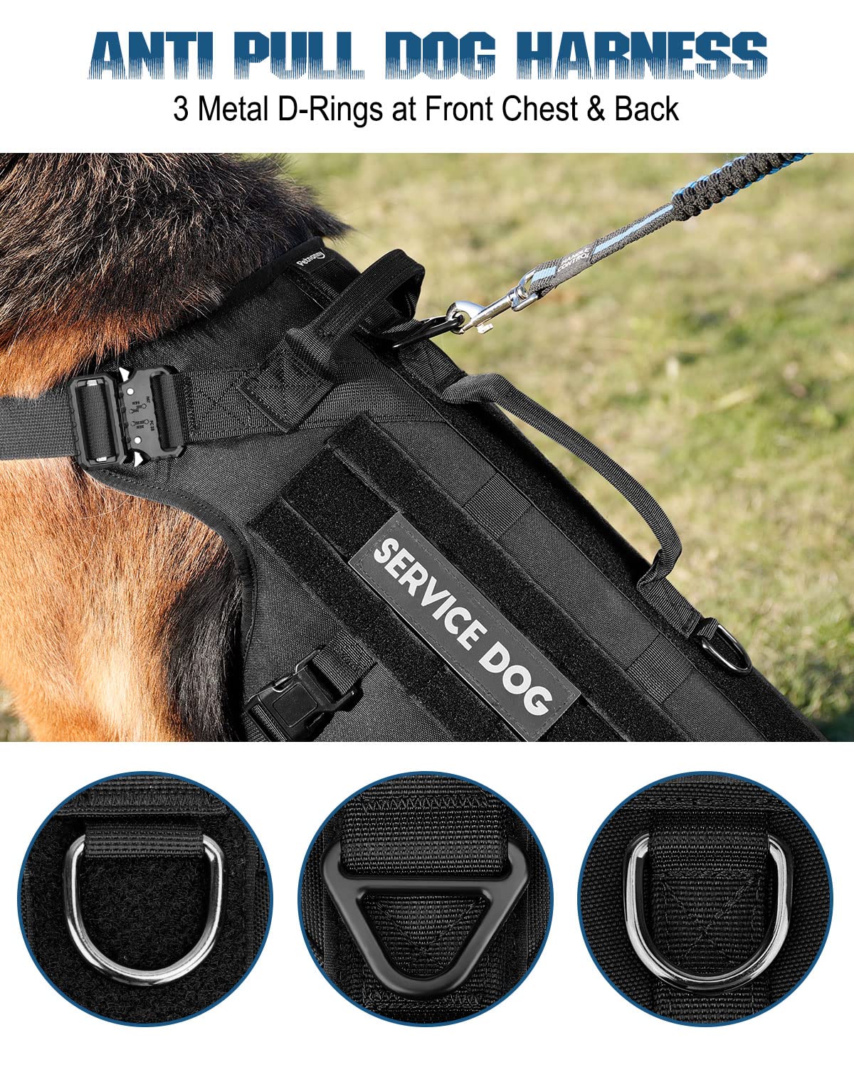 [3/4 Body Coverage For Perfect Fit] - Petnanny Tactical Dog Harness For Large Dogs Update Designed With Long Body Coverage And The Multiple Adjustment Straps Allow For A Perfect Fit To Different Medium Large Breed Dog. Zero-Hindrance Structure, Has Plenty Of Clearance In Their Armpit Area That Doesnt Restrict Shoulder And Forearm Movement