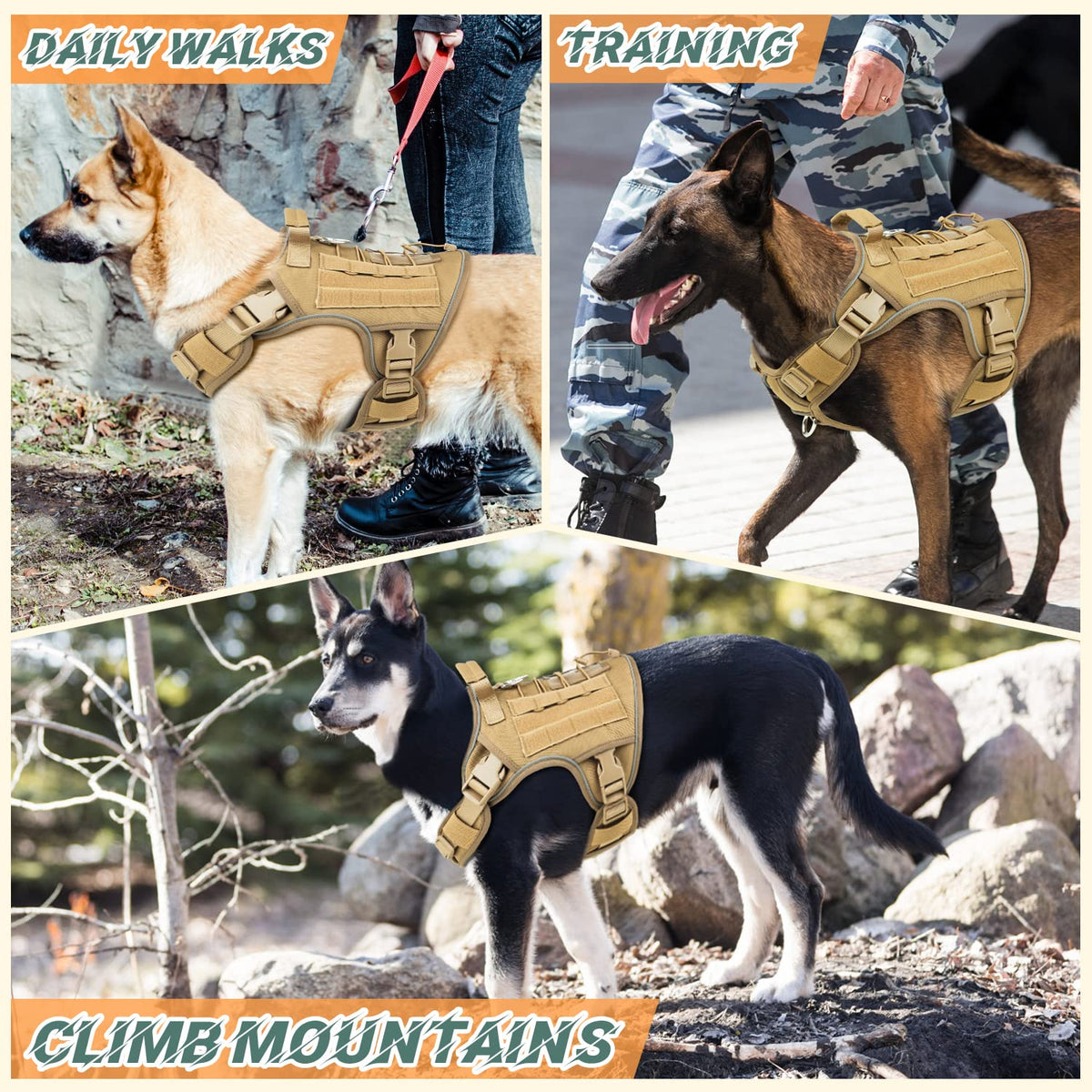 Q: What materials is the harness made from?A: The Tactical Dog Harness is constructed from military-standard materials, including durable 1000D nylon for the outer layer and a breathable mesh for the inner layer, ensuring comfort and durability for your pet.