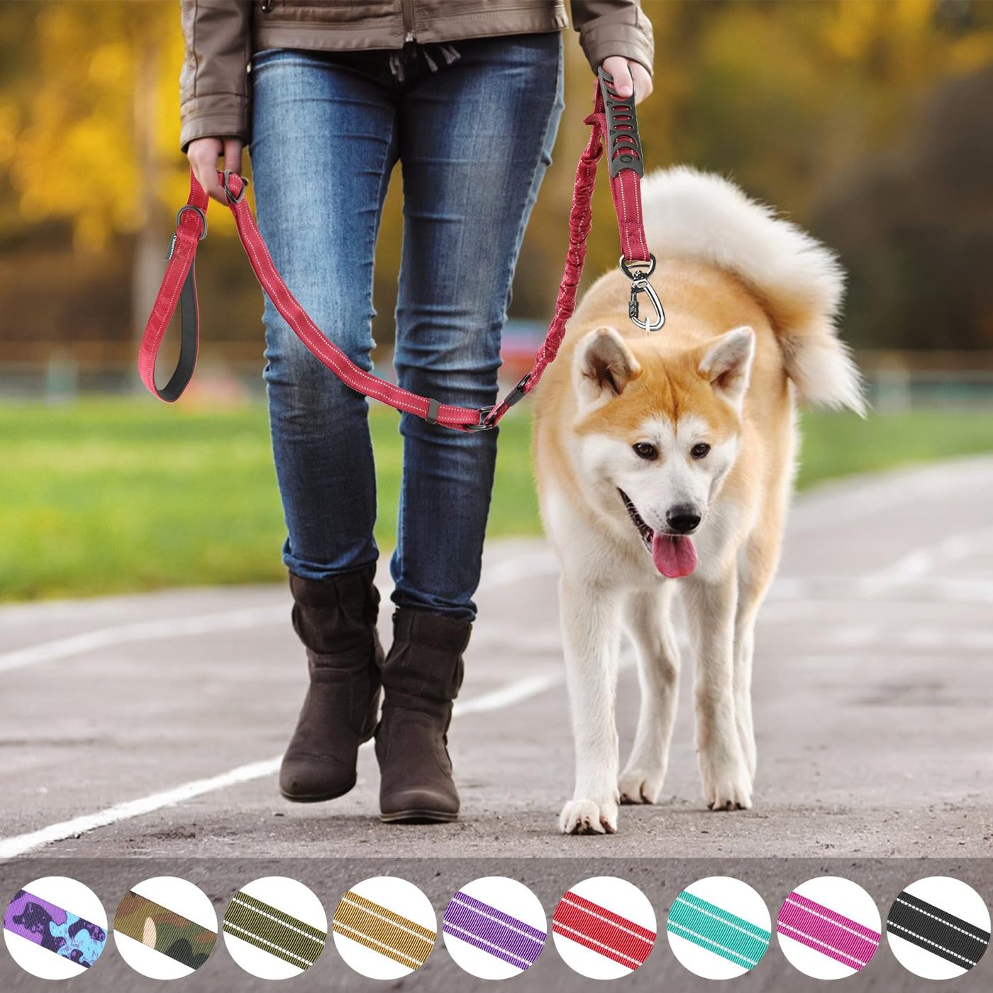 Chioratree dog leash, dog leashes for large dogs heavy duty, leash for large dogs that pull, leashes for large breed dogs, dog leash for small dogs,. Why choose the Chioratree tactical dog leash? 1. The dog leashes is made of high-quality 1000D nylon and metal accessories material, highly reflective stitches, exquisite workmanship, and more durability. The inner lining is soft, will not harm the dog s skin and hair, and is more comfortable to wear. 3. Comfort Double Handles: Our tactical dog leash is designed with 2 different comfortable handles. The Padded handle at the end is more suitable for your daily dog walking. The soft rubber traffic handle is more suitable for used on busy sidewalks or crowded areas in order to close control of your dog. 4. Multi-Safety Design: This K9 Military Dog Leash has a double-sided reflective design to ensure your dog s safety at night. Designed with 1 seat belt buckle to keep your dog safety while you driving.1 D-ring near the training control handle to hang dog walking accessories. 5. Shock Absorbing Bungee: This bungee dog leash for medium dogs uses innovative Zero Shock BUNGEE Technology,can be stretched to a maximum length of 6ft. Specification: Metrial: Nylon, Metal Color: Black, Pink, Teal, Purple, Item size: 180(L) x 2.54(W) CM Lenght: 4ft to 6ft Weight: 215g Package side: 7.87 x 5.39 x 1.38 inches You will get 1 x Dog Leash Guarantee: 90days Multiple Use: Large dog leash is suitable for medium large x-large dogs training,walking, running. Product Care Instructions: Stains - Use a mild detergent, water, and a soft brush to remove stains. DRY - Hang items outside or in a well-ventilated area and avoid exposing them to direct sunlight. Washing - Hand Washable, don t machine washable.