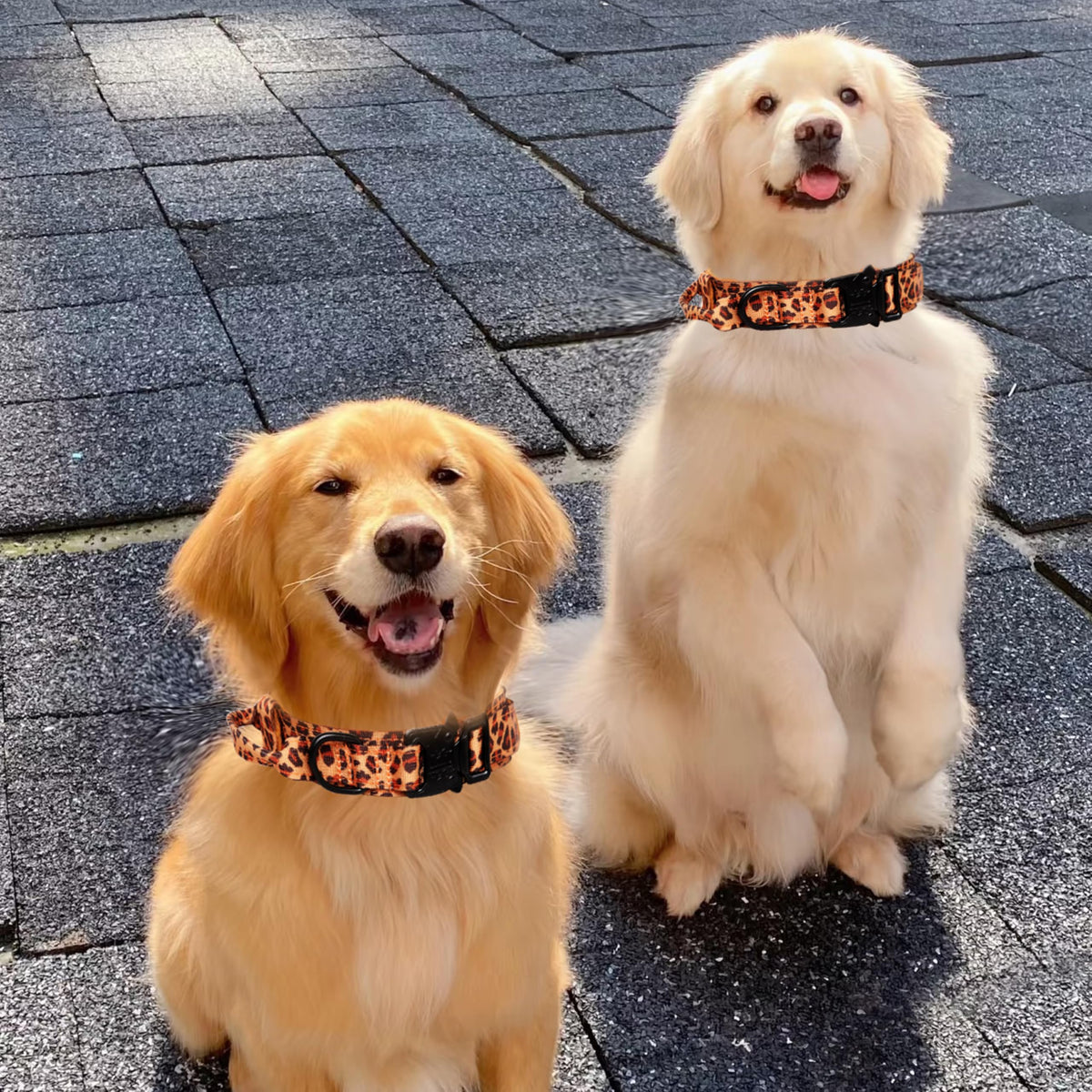 Tactical Nylon Dog Collar - Adjustable, Heavy Duty Metal Buckle With Handle For Training (Leopard, M)